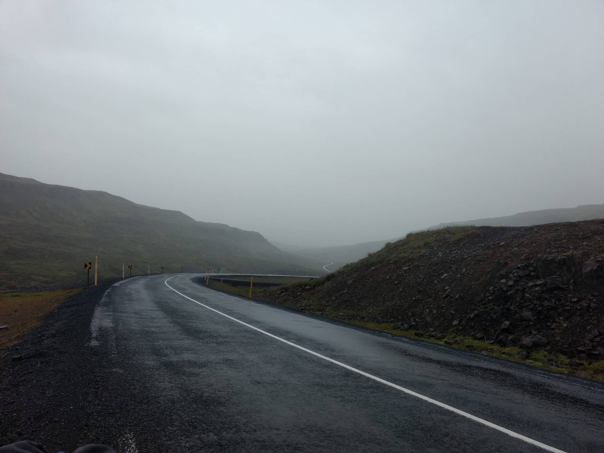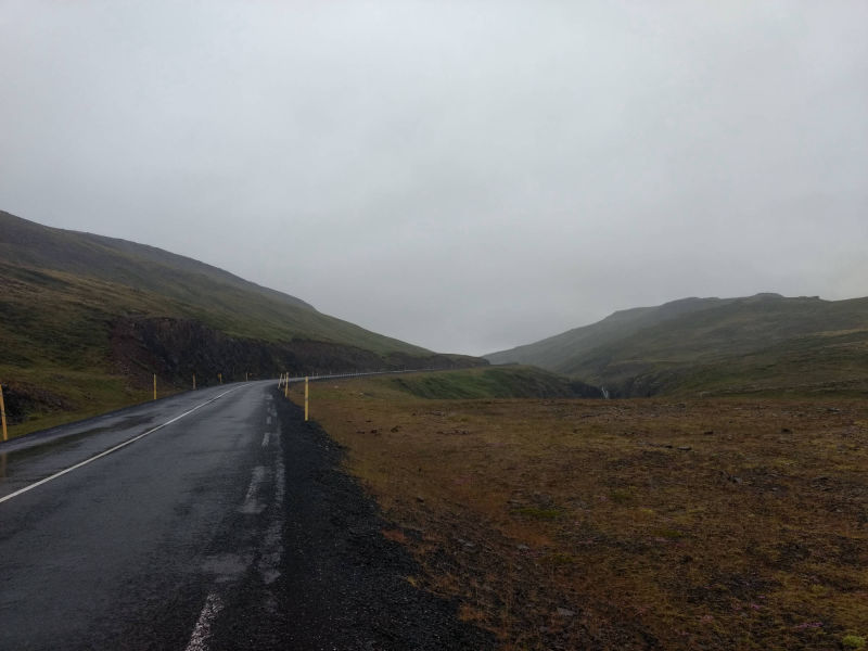 Mit einem guten Gefühl startete ich also in den Tag. Die Erkältung war zwar noch nicht abgeklungen, aber aus irgendeinem Grund hatte ich wieder mehr Energie. Also schnell das Zelt abgebaut und los. Ich fragte noch einen weiteren Gast des Campingplatzes, wo man denn hier bezahlen müsste. (Normalerweise kamen gegen Abend die Besitzer des Campingplatzes und verlangten die Bezahlung.) Sie sagte nur: "Wenn sie nicht kommen, hast du Glück gehabt. Jetzt hast du noch die Chance einfach abzuhauen!" Ich bin ja sonst immer ein ehrlicher Mensch, aber diese Möglichkeit wollte ich mir nicht entgehen lassen... Und schon war ich wieder auf dem Weg. Die ersten sechs Kilometer verbrachte ich damit, wieder auf die Ringstraße zurückzukehren. Auf meiner Reise lohnt es sich tatsächlich, früh aufzustehen, weil dann auf der Ringstraße noch nicht so viel los ist. Ich legte also weitere 12 Kilometer des Tages auf der Ringstraße zurück, bis ich an einem kleinen Haus einen Mann traf, der mir netterweise meine Wasserflasche auffüllte. In einem kurzen Gespräch schilderte ich meine Route und der Mann beschrieb mir den Verlauf meines kommenden Weges: Ich sollte noch ca. 45 Minuten bis zum Abzweig brauchen und dann würde ich direkt auf einen Berg zufahren, den ich auch überqueren müsse. Das sollte mich mindestens eine bis zwei Stunden kosten. Danach käme aber auch eine Abfahrt und ab dann sei alles wieder sehr flach. Damit hatte ich eine ungefähre Vorstellung des Weges und eine vollgefüllte Wasserflasche. Was sollte also noch schiefgehen?