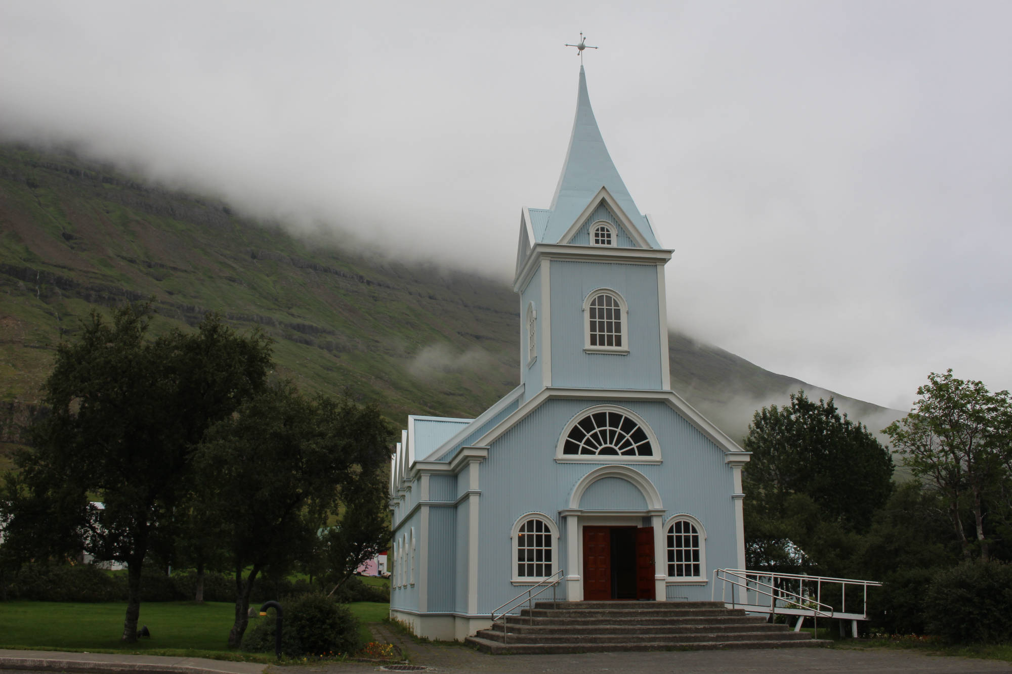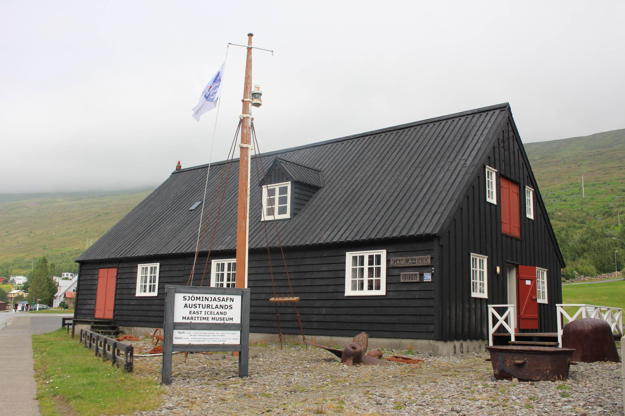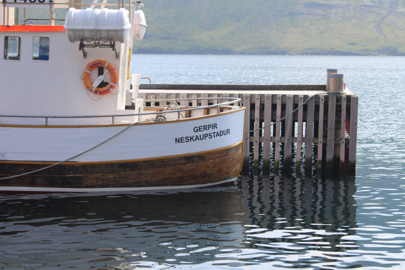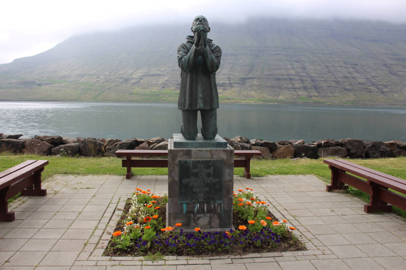 Von den drei Orten mochte ich Neskaupstaður am liebsten. Der kleine Park direkt neben dem Hafen bot mir ein schattiges Plätzchen. Mit Blick auf die Berge auf der anderen Seite des Fjords genoss ich mein Mittagessen. Als ich durch den Garten spazierte, laß ich, dass dieser Ort eine spezielle Geschichte hat. Ein Verein, der sich Nannas Frauenverbindung nannte, hatte die Stadtverwaltung 1933 um dieses Land gebeten, damit hier ein Park entstehen könnte. Hier wäre ich wirklich gerne noch ein paar Stunden geblieben, aber ich hatte noch etwas anderes vor.