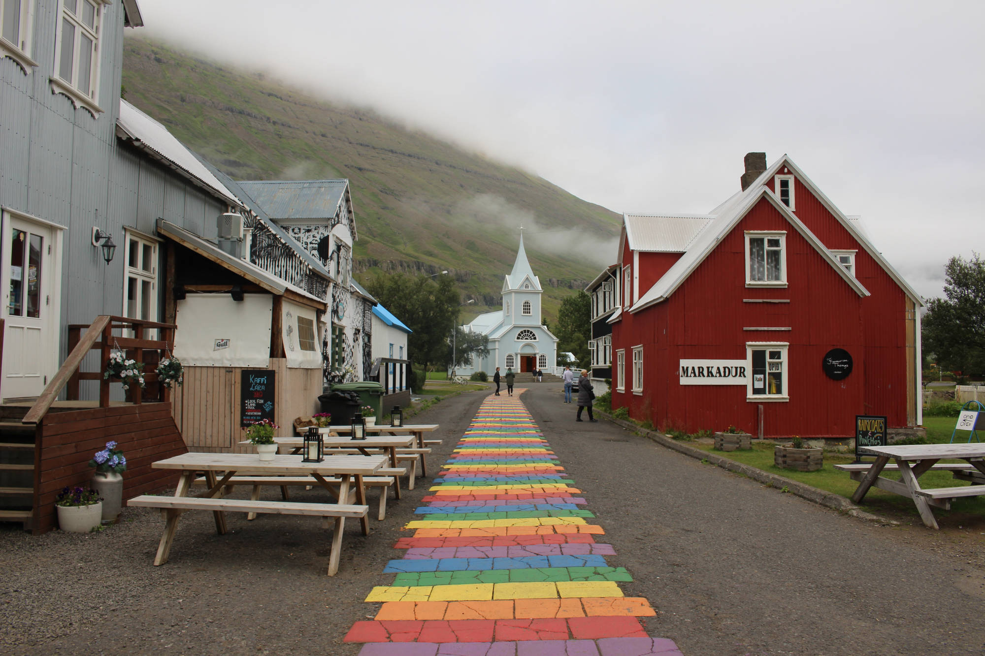 Nach einem Spaziergang auf der Regenbogenstraße und durch den Rest der Stadt steuerte ich mein nächstes Ziel an: Eskifjörður. Dieses recht langgezogene Dorf wirkte sehr friedlich und ruhig. Kinder spielten auf dem Fußballplatz und am Hafen schwammen die Enten im Wasser - Harmonie pur. Nach der Durchquerung eines Tunnels kam ich nach Neskaupstaður. Hier fand gerade ein Wettlauf statt. Mir wurde erklärt, dass es 27 Kilometer zu bewältigen gab und ich mich gerade am Zieleinlauf befand. Dass hier ein solches Event stattfinden würde, hätte ich nicht erwartet...