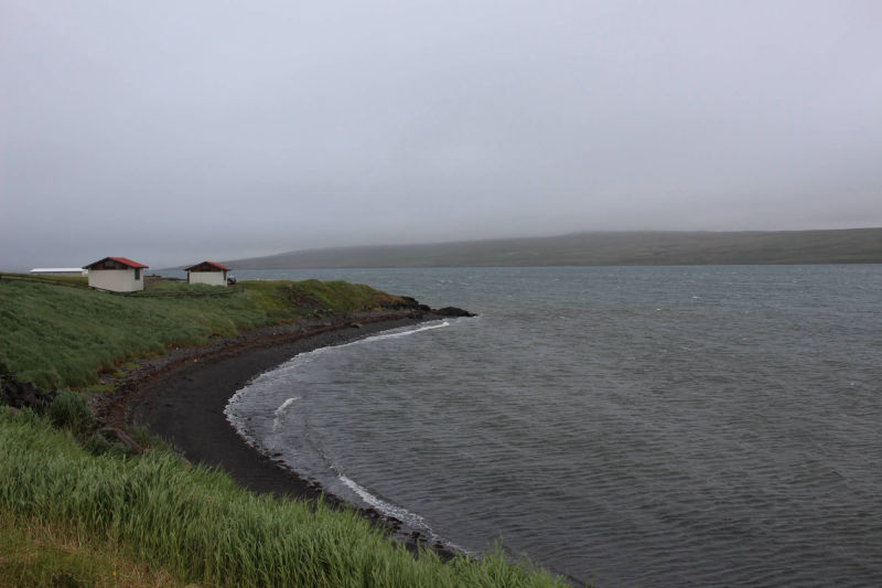 Die Strecke bis zum Ende des Fjordes im Landesinneren war einfach nur herrlich. Ich hatte Rückenwind und schwebte quasi die Straße entlang. Solange der Wind auf meiner Seite war, war ich auch glücklich. Doch ich ahnte schon, wie sich die Kilometer auf der anderen Seite des Fjordes anfühlen würden. Und so war es auch. Die letzten 12 Kilometer waren die reinste Qual. Selbst die Abfahrten fühlen sich an, als würde man bergauf fahren. Unglaublich, welche Kraft dieser isländische Wind mit sich brachte. Ich brauchte mindestens doppelt so lang, wie für die gleiche Strecke auf der anderen Seite. Die vielen LKWs, die mittlerweile die Ringstraße bevölkerten, machten die ganze Fahrt nicht viel angenehmer. Aber ich kann nur immer wieder sagen: Alles, was den Weg zum Ziel schlimmer macht, macht die Ankunft umso angenehmer. Und man ist einfach dankbar, am Ziel angekommen zu sein. Ich lerne mittlerweile wirklich, die kleinen Dinge zu schätzen. Wann hätte ich mich in Deutschland einmal so über fünf mit dem Fahrrad gefahrene Kilometer gefreut? Der angesteuerte Campingplatz lag direkt am Fjord und war äußerst luxuriös ausgestattet. Eine junge Frau empfing mich und wies mir meinen Platz zum Zelten zu. Ich war mit meiner Ankunft am späten Nachmittag der erste Gast und hatte somit auch alle Freiräume. Der Campingplatz war mit einem kleineren Häuschen ausgestattet, in dem ein recht großer Essensraum, Waschräume und die Küche zu finden war. Nun hatte ich Zeit, all meine Klamotten wieder einmal richtig zu trocknen und die komplette Elektronik wieder vollzuladen - und das ganze mit einem herrlichen Blick auf den Fjord. Ich hatte übrigens auch das Glück, dass in der Küche noch ein paar Nudeln von vorherigen Gästen übrig gelassen wurden. Somit konnte ich mir in der Küche heute sogar ein warmes Essen gönnen. Ich konnte mein Glück kaum fassen. Nach einiger Zeit trafen zwei Niederländer ein, mit denen ich sofort ins Gespräch kam. Sie berichteten, dass sie das erste Mal in Island seien und mit dem Camper-Van einmal um die ganze Insel unterwegs wären - nur entgegen dem Uhrzeigersinn. Während wir aßen, führten wir ein langes Gespräch über Gott und die Welt und beschlossen dann dem "heißen Topf", der auch Teil des Campingplatzes war, einen Besuch abzustatten. Später erhöhte sich die Gästeanzahl auf den Campingplatz und drei Amerikaner aus Massachusetts gesellten sich zu uns in den Pool. Wenn man sich das so vorstellt, hätte das ganze auch der Beginn eines Witzes sein können: Saßen einmal drei Amerikaner, zwei Niederländer und eine Deutsche im Whirlpool... Lustigerweise war das Hauptgesprächsthema die Legalisierung von Cannabis...