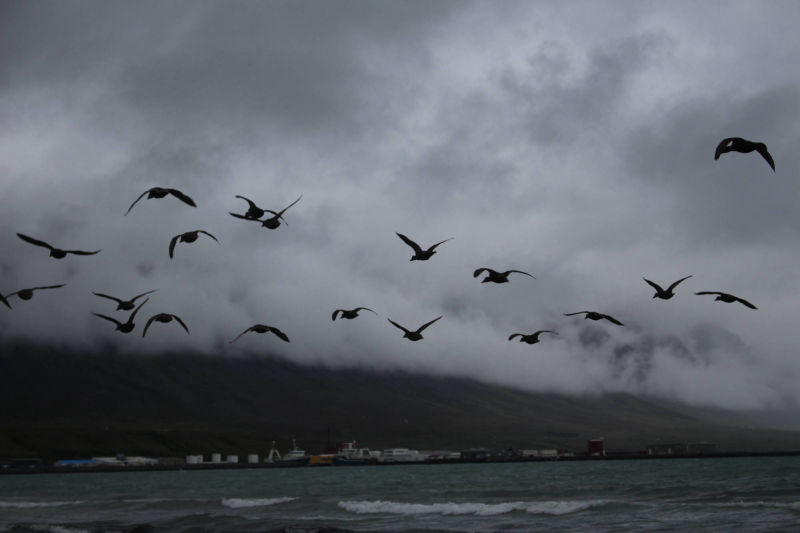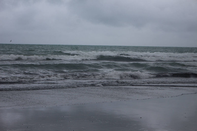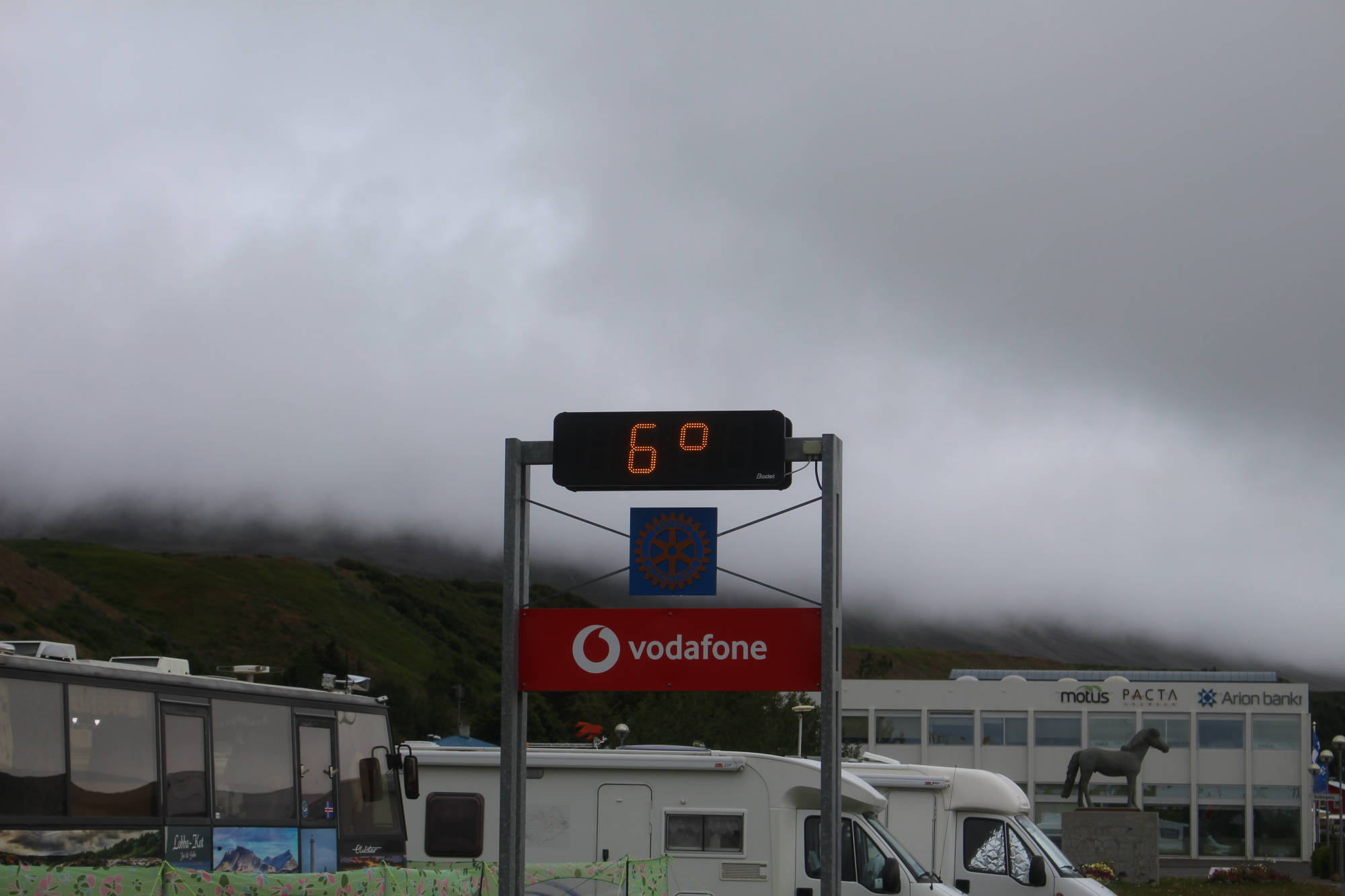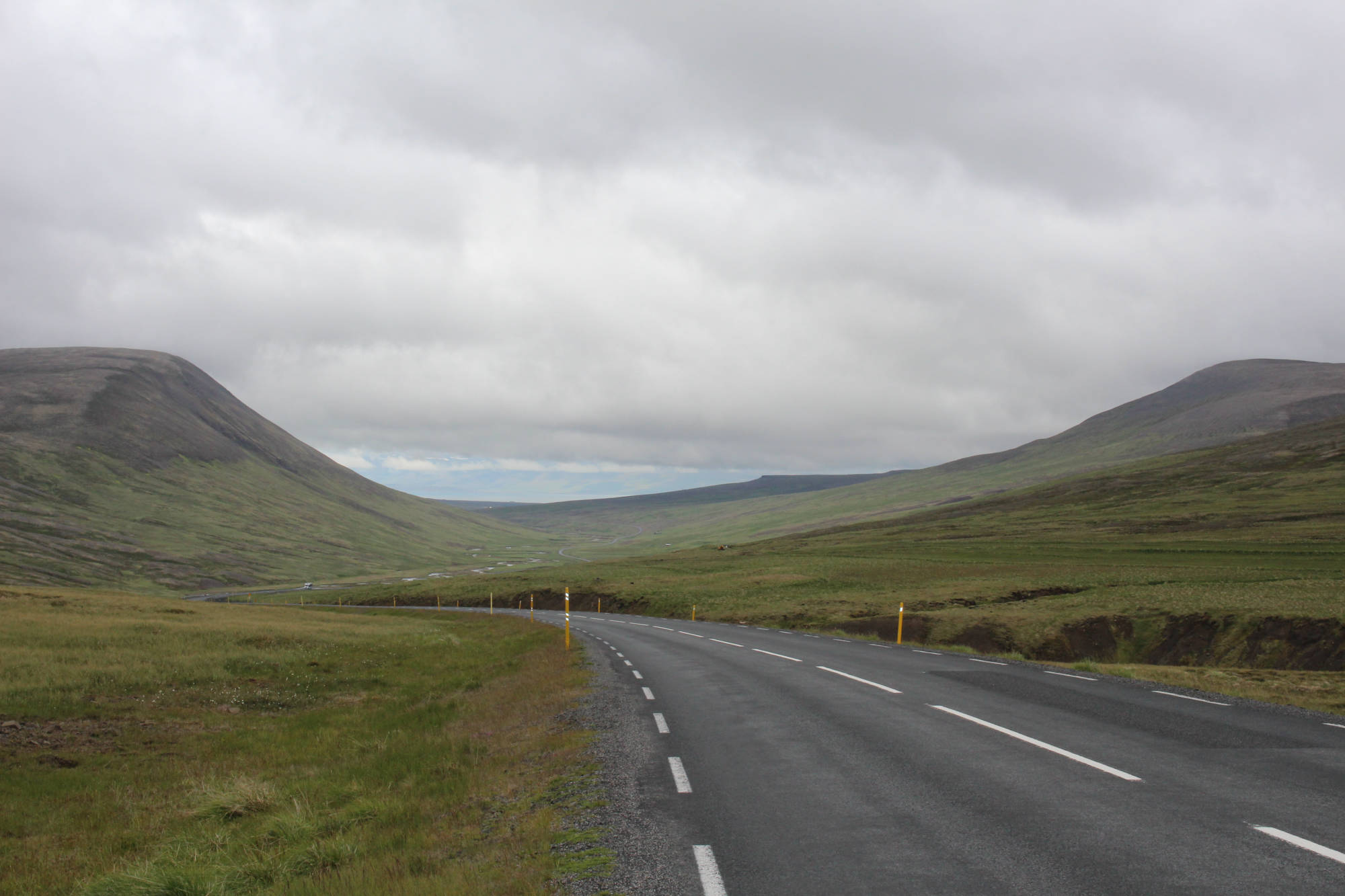 Der Plan ging ziemlich gut auf. Nach einiger Zeit war ich schon ziemlich weit oben und bemerkte, dass es wirklich kalt geworden war. Das Schild im Tal hatte eine Temperatur von 4 °C auf dem Berg vorausgesagt und das bekam ich zu spüren. Ich konnte keine langen Pausen machen. Bewegung erzeugt Wärme. Das ging auch ganz gut, bis ich oben war. Als ich dann die Abfahrt genießen wollte, zog ich fast alles an, was ich so dabei hatte. Ich sah zwar aus wie ein Eskimo, aber ich fror nicht mehr. Nachdem ich den Þverárfjall also hinter mir gelassen hatte, waren die Wege relativ flach und vor allem (...was ein weiterer Vorteil dieses Umweges war) nicht so befahren, wie die Ringstraße. Ich genoss also die Gesellschaft der vielen Islandschafe am Wegesrand und kam mit dem "Mamma Mia"-Soundtrack auf den Ohren auch ziemlich schnell in Sauðárkrókur an. Dort stellte ich mein Zelt auf und kroch eine Weile in den Schlafsack, um mich aufzuwärmen. Ich hatte nicht gemerkt, wie kalt mir wirklich war. Nach ca. 2 Stunden fühlten sich alle Extremitäten wieder warm und lebensfähig an. Ich war bereit, mir Sauðárkrókur ein bisschen näher anzusehen. Also rauf aufs Fahrrad und los... oder auch nicht. Mein Hinterreifen war platt. Das Auswechseln ging ziemlich schnell - Ich hatte in Deutschland ja auch vom Besten gelernt... Nachdem ich meinen besten Kumpel geheilt hatte, fuhr ich zum örtlichen schwarzen Strand. Schon unglaublich, dass der Sand aus geraspeltem Lavagestein besteht...