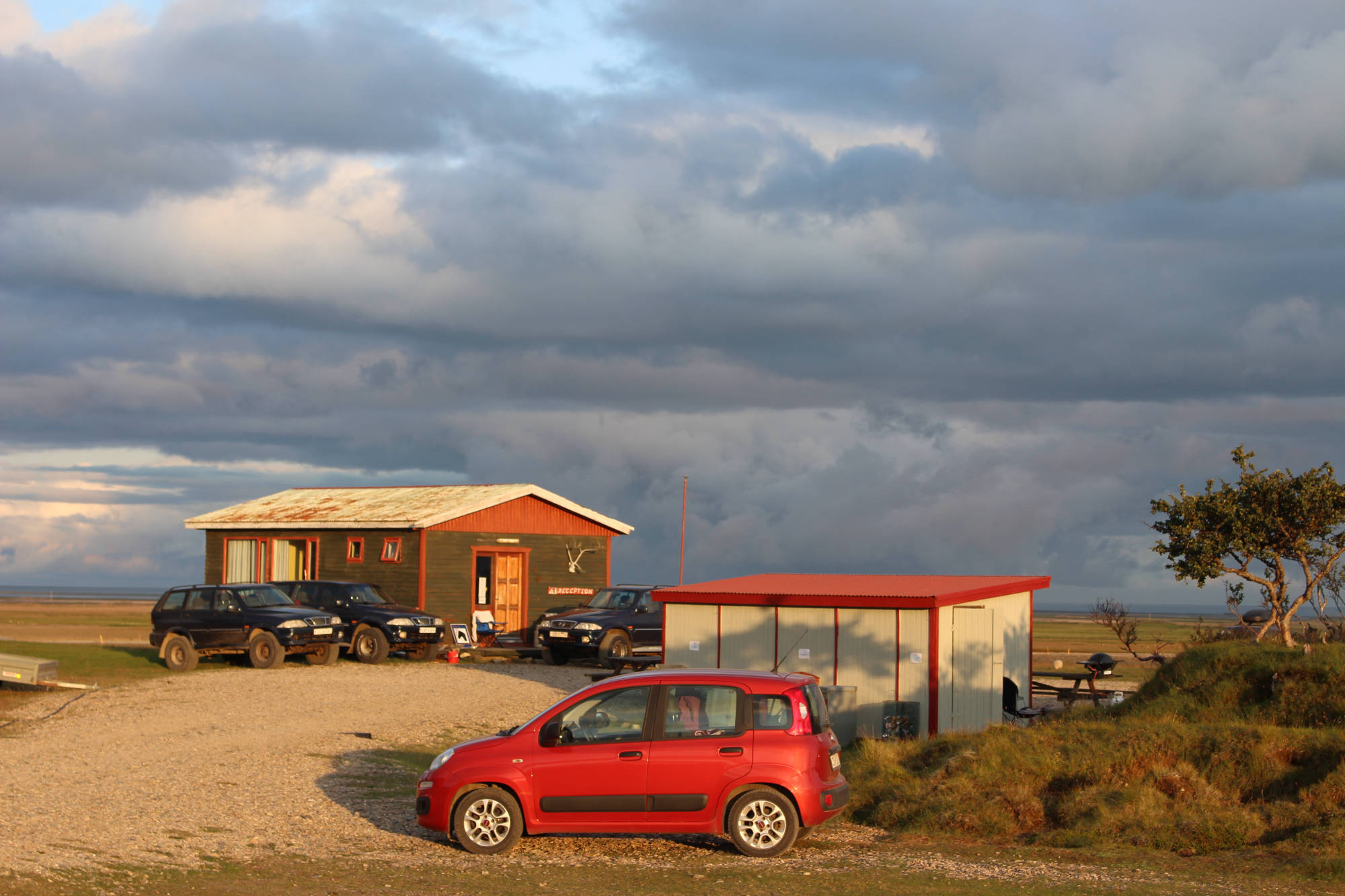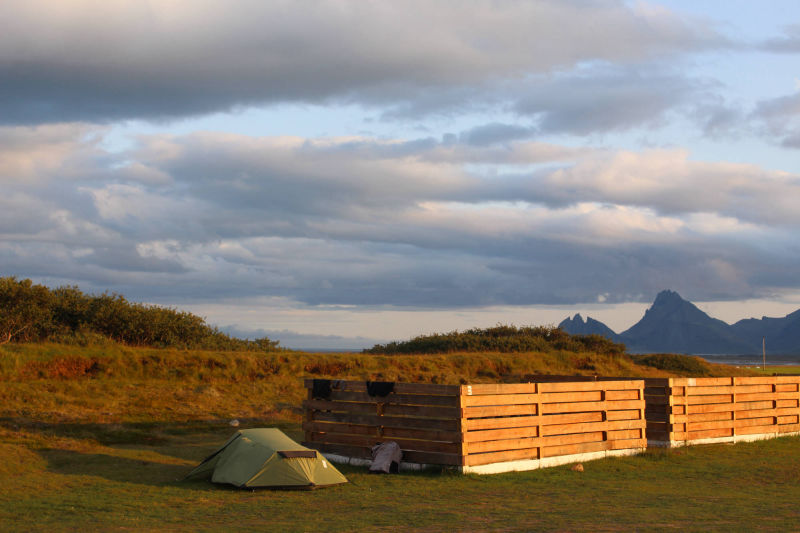 Ich war begeistert von dem Campingplatz, an dem ich - offensichtlich als erster Gast - angelangt war: In zwei kleinen Containern waren Waschräume und Küche eingerichtet und es war alles da, was ich brauchte. Vor allem war diese Unterkunft deutlich günstiger, als diejenigen zuvor. Ich ging also zum kleinen Haus, in dem sich die Rezeption befand, aber es war niemand da. Nach einer halben Stunde fuhr ein Auto vor und ich traf einen Mann an, der mich bestens gelaunt begrüßte. Ich berichtete ihm, wie schön ich den Ort hier fand und er reagierte besonders erfreut auf dieses Kompliment. Wir kamen ins Gespräch und bald fragte er mich, ob ich mich für Pferde interessiere. Ich erzählte ihm, von meinem Traum einmal auf einem Islandpferd zu reiten und dass ich als Kind ein echter Pferdefan gewesen war. Daraufhin fragte er mich: "Hast du Lust, etwas Verrücktes zu machen?" Was antwortet man auf solch eine Frage, wenn ein Isländer diese stellt... natürlich JA! Und er erklärte mir daraufhin, was er am heutigen Nachmittag noch vorhatte: Seine Pferde stünden auf der Weide, aber sie hätten sich mit den Pferden seines Nachbarn vermischt. Sein Ziel war es nun, die Gruppen wieder zu trennen. Dafür müsse er aber erst alle Pferde zurück in den Stall bringen. Während des Gesprächs lernte ich noch Merri kennen. Sie ist ein Mädchen aus Finnland, das hier den Sommer lang arbeitet und mit den Pferden sowie dem Campingplatz hilft. Der Mann hat übrigens einen unaussprechlichen isländischen Namen, weshalb ich auch nach mehreren Hörversuchen keine Ahnung habe, wie man ihn schreibt. Ich durfte ihn deshalb einfach nur bei seinem Anfangsbuchstaben "G" (englisch ausgesprochen) nennen. Meira hatte noch Dinge zu erledigen und so fuhren G und ich auf die riesige Weidefläche, um die Pferde zuerst einmal zu suchen. Nach einer halben Stunde hatten wir sie entdeckt. Das Abenteuerliche an der ganzen Sache war, dass es keinerlei Wege auf dieser Weide gab. Die Wiese war durchzogen von Erdhügeln und mittig verlief eine Art Flussbett, das weitestgehend ausgetrocknet war. Es ließ sich hier auf jeden Fall nicht besonders gut fahren. Trotzdem trieb der isländische Farmer die Pferde mit seinem Auto Richtung Stall. Ich glaube, ich bin in einem Auto noch nie so durchgerüttelt worden. Jetzt erklärte sich mir auch das recht ramponierte Aussehen des Wagens. Bis die Pferde auf der eingezäunten Wiese standen, auf der wir sie haben wollten, vergingen mehr als zwei Stunden. Zwischendurch stieg ich immer mal wieder aus und versuchte die Pferde im Laufschritt anzutreiben. Doch der Weg war relativ weit und die Pferde etwas träge. Als dann alle Vierbeine auf der Wiese standen, hieß es sie in den Stall zu treiben. Doch das war zu zweit gar nicht so einfach, auch weil die Tiere gar nicht daran dachte, sich jetzt in den Stall zu bewegen. Erst mit der Hilfe von anderen Touristen, die aus Neugierde angehalten hatten (2 Franzosen und 2 Deutsche) war es möglich, alle Pferde in den Stall zu bewegen. Dann ging es ans Aussortieren. Dies war auch keine einfache Angelegenheit und dauerte mehr als eine Stunde. Als wir wieder am Campingplatz ankamen, war es schon halb 6. Aber wie ich dann mitbekam, waren wir nur gekommen, um Merri abzuholen. Jetzt sollten die 6 Pferde des Farmers auf eine andere Weide nahe des Campingplatzes gebracht werden. G entschied sich dazu, die Pferde entlang des Zaunes neben der Straße zu treiben und mit dem Auto hinter ihnen herzufahren. Dies hatte schon oft funktioniert, aber heute wollten die Pferde nicht so, wie er wollte. Sie wechselten die Straßenseite und galoppierten wieder raus auf die Weide. Nun ging das ganze Spiel also von vorne los - nur mit ein paar weniger Pferden. Da wir nach einer halben Stunde immer noch keinen Erfolg hatten und die Pferde nach wie vor näher am Stall, als am Campingplatz waren, entschlossen wir uns, die Aktion abzubrechen und die Pferde zurück in den Stall zu bringen. Der geplante Ausritt fiel ins Wasser, da es so langsam spät wurde und eine Gruppe angemeldeter Gäste den Campingplatz erreicht hatte. So fuhren wir gegen halb 8 wieder zurück zum Zeltplatz. Langsam hatte ich wirklich Hunger bekommen, aber zuerst wollte ich nur noch duschen. Nach diesen angenehmen 10 Minuten in der Dusche, kehrte ich zum Zelt zurück und entdeckte das kleine Dankeschön dafür, dass ich mit den Pferden geholfen hatte. Wie lieb von den beiden! Ich kochte ich mir in der Küche Nudeln und genoss mein Abendessen. Jetzt waren meine Grundbedürfnisse wieder erfüllt. Was für ein Tag! Nach der längsten Etappe hatte ich nun auch noch einen Ausdauerlauf hingelegt. Das spürte ich so langsam auch in meinen Beinen. Ich ging noch einmal zur Rezeption und bedankte mich für diesen schönen Nachmittag. Wir verstanden uns so gut, dass ich beschloss noch einen weiteren Tag hierzubleiben. Merri sagte, sie würde mit mir eine Wanderung unternehmen und wir könnten auch - wenn Zeit sei - den verpassten Ausritt nachholen. Bei solchen Aussichten konnte ich nur bleiben. Bis Höfn war es zudem nicht mehr weit und ich entschied, dass es gut sei, einen Tag freizunehmen. Morgen war also Ausschlafen angesagt... Perfekt! Ich kroch erschöpft in meinen Schlafsack und schlief in Rekordzeit ein.