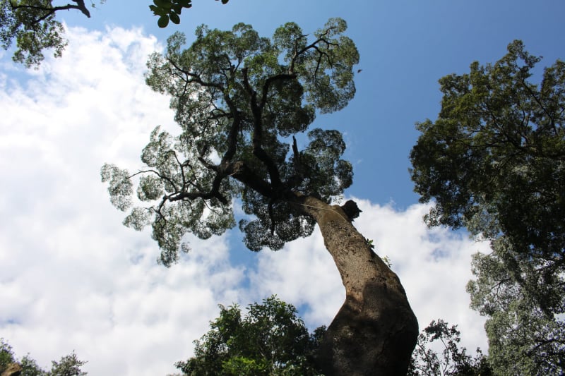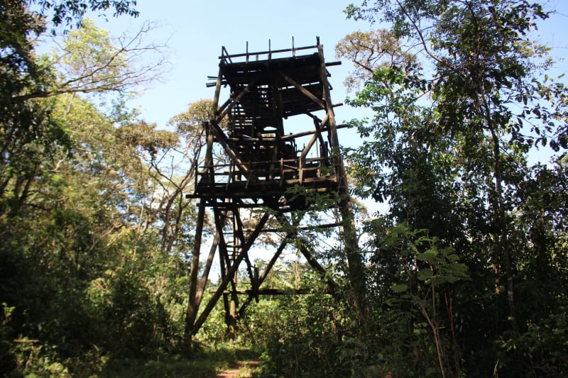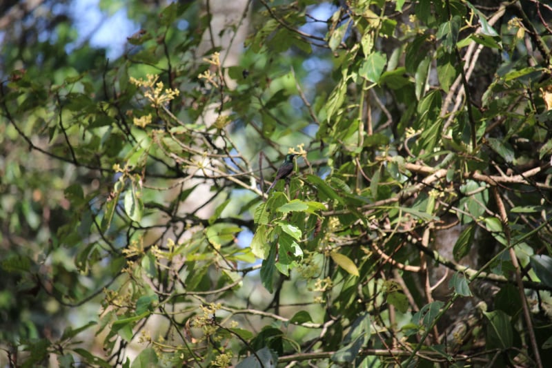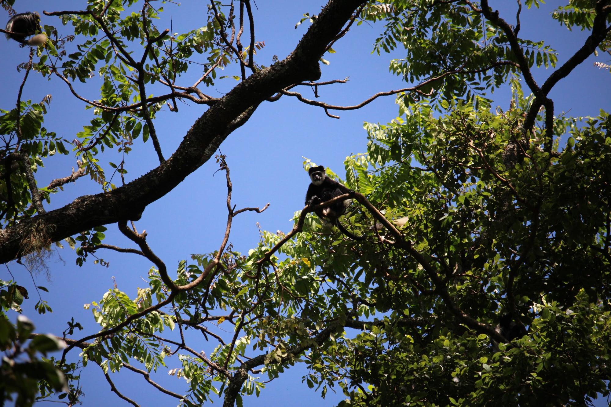 Unser erstes Ziel war der sogenannte "Rondo Retreat Center". Der touristisch angelegte Ort ist eine Unterkunft mitten im Regenwald. Touristisch heißt hier insbesondere, dass man hier auch touristisch hohe Preise vorfindet. Da uns die recht arrogante Art der Person an der Rezeption nicht wirklich zusagte und wir uns diese Art des Luxus auch nicht leisten wollten, entschieden wir zur Kakamega Forest Station zu fahren. Das war die richtige Entscheidung, denn dort trafen wir unseren Guide, der in diesem Wald geboren und aufgewachsen war. Er führte uns für knapp 1.5 Stunden durch den Wald. Leider kamen wir zu einer Zeit, in der Vögel gerade ihren Mittagsschlaf hielten. Deshalb war die Hauptattraktion für uns die Diademmeerkatzen, die sich in höchsten Höhen ihren Weg von Ast zu Ast bahnten. Der Guide ließ uns an seinem enormen Wissen über alle Lebewesen im Wald teilhaben. Die Aussage, dass er von jedem beliebigen Ort im Wald wieder nach Hause finden würde, beeindruckte mich. Schließlich umfasst der Wald eine Fläche von 23.000 ha. Leider mussten wir aber erfahren, dass der Wald um 1900 noch 240.000 ha groß war und heute wegen Abholzung und Co. auf diese 10 Prozent geschrumpft ist.