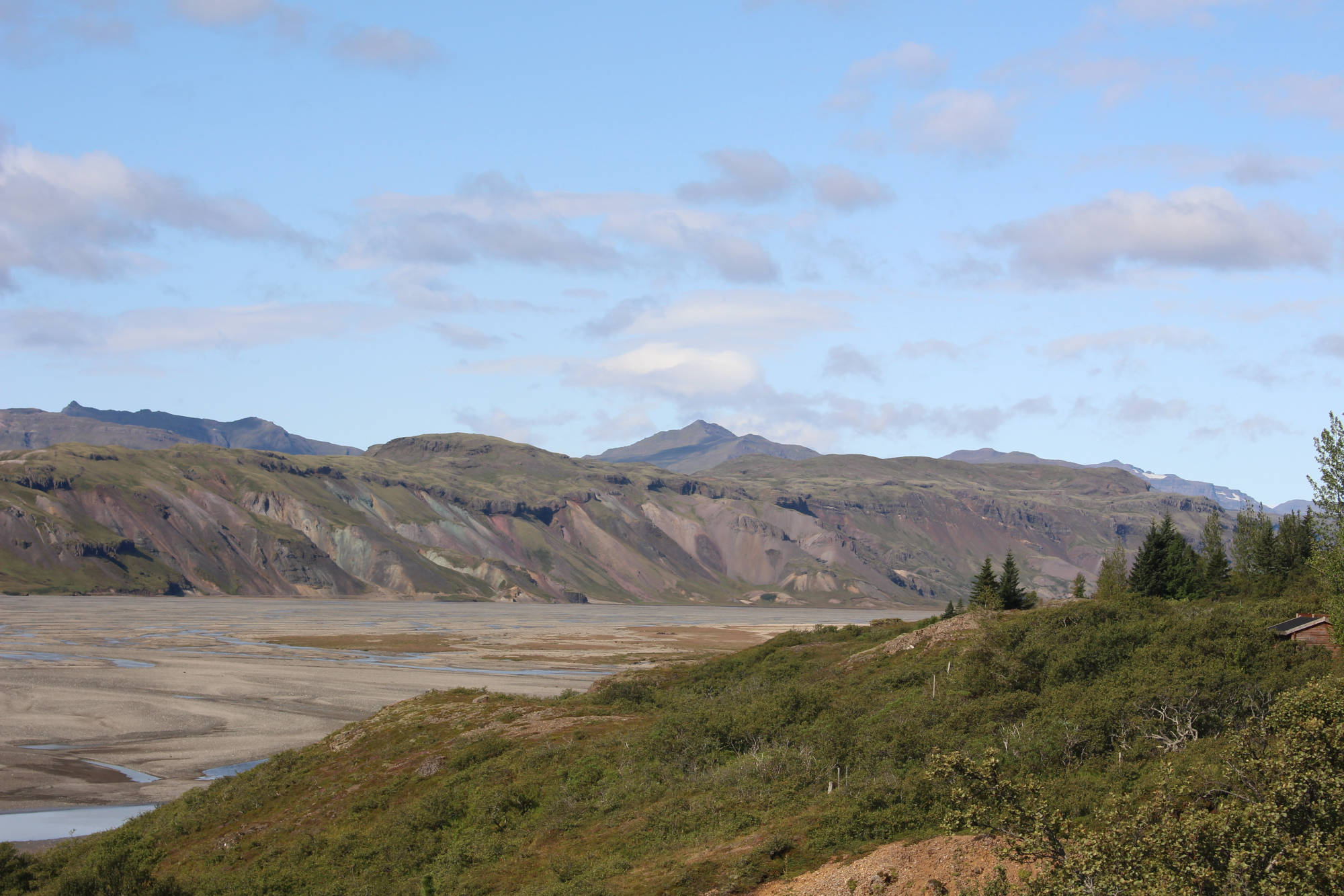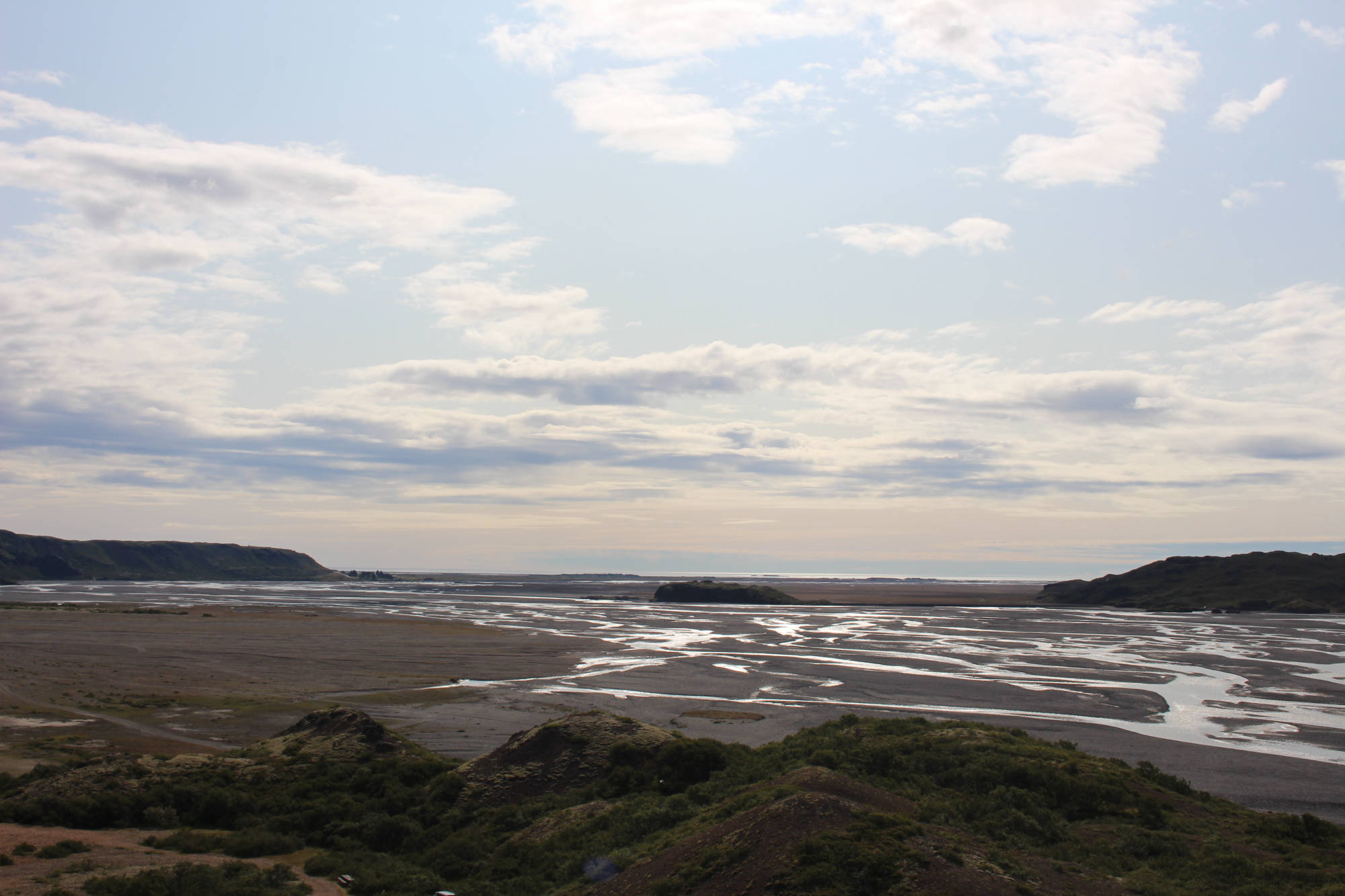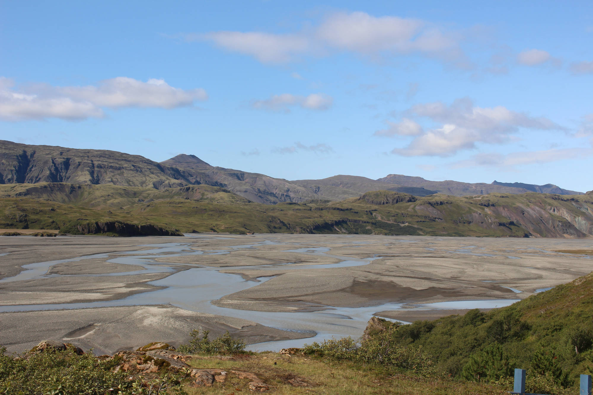 Heute Morgen wachte ich trotz geplanten Ausschlafens schon früh auf. Ich fand nicht wieder zurück in den Schlaf und blieb also wach. Bald hörte ich, wie Merri draußen schon fleißig am Arbeiten war. Ich stand deshalb auf, um ihr zu helfen. Wir erledigten zusammen die Wäsche und bereiteten die Zelte vor, die im Rahmen des Angebotes "Rent a tent" (Miete ein Zelt) hier ausgeliehen werden können. Merri und ich verstanden uns wirklich gut und die Arbeit dauerte zusammen auch nur halb so lang. Gunnlaugr (Ich weiß jetzt, wie man seinen Namen schreibt... Die Aussprache ist noch immer schwierig.) fuhr dann mit mir zusammen zu seinem anderen Campingplatz ganz in der Nähe. Dieser lag ein wenig mehr abseits, aber dafür in der beinahe unberührten Natur Islands. Dort angekommen bat er die Gäste um die Bezahlung und da wir noch Zeit hatten, wanderte ich auf einen Hügel, um mir einen Überblick über die Region zu verschaffen. Diese Landschaft ist berechtigterweise ein Naturschutzgebiet. Das Flussbett des Jökulsá í Lóni bildete den Grund des Tales, welches sich vor mir erstreckte. Es wurde eingerahmt von hohen Bergen, die zum großen Teil aus Granit bestehen. Nachdem ich wieder am Auto angekommen war, fuhren wir noch weiter ins Nirgendwo. Gunnlaugr erklärte mir, das dies eine Wanderroute für die Zeit von etwa einem Tag sei. Am Ende dieser Strecke befänden sich dann Zelte mit Schlafsäcken und Matratzen. Nach einer Nacht dort könne man dann wieder zum ursprünglichen Campingplatz zurückkehren. Und tatsächlich schimmerte nach etwa einer Stunde Fahrt auf einer Schotterstraße etwas Blaues im Gebüsch neben uns. Hier, gefühlt am Ende der Welt, standen zwei Zelte im Wald. Der Grund, warum wir diesen vollkommen verlassenen Ort aufsuchten, waren die Matratzen in den Zelten. Diese benötigten wir für die kommenden Reservierungen diesen Abend, denn es waren nicht ausreichend Matratzen auf dem Campingplatz. Wir luden also alles ein und fuhren zurück. Merri erwartete uns schon und wir verbrachten die nächste Zeit damit, die Ordnung in den Zelten zu perfektionieren. Bald waren wir damit fertig und nun war etwas Zeit, zu entspannen. Nachmittags rief mich Gunnlaugr zur Rezeption und nun war es an der Zeit, die Pferde auf die Weide beim Campingplatz zu bringen. Wir wollten also das Vorhaben zu Ende bringen, an welchem wir gestern gescheitert waren. Diesmal lief das Ganze aber organisierter ab. Für jedes Pferd wurde Zaumzeug in den Kofferraum geladen und dann kam die Überraschung: Es befanden sich drei Sättel im Auto! Somit war ich also auch im Plan involviert - und zwar reitend! Voller Vorfreude konnte ich es kaum erwarten, bis wir den Stall erreichten. Auf dem Weg zu den Pferden gab mir Gunnlaugr noch ein paar Tipps, doch das meiste hatte ich noch in Erinnerung. Bald waren wir bereit. Jeder von uns dreien saß auf einem Pferd und die restlichen drei Pferde wurden von Gunnlaugr und Merri mitgeführt. Und dann ging es los. Die Strecke bis zum Campingplatz betrug etwa 6 Kilometer. Nach einem kurzen Schauer lag eine angenehme frische in der Luft und wir ritten immer neben der Straße auf der Wiese entlang. Ich blieb durchgehend hinter Merri und mein Pferd war das ruhigste von allen. Es folgte also seinem Vorgänger und ich hatte nicht wirklich viel zu tun, außer es ab und zu anzutreiben oder am Überholen seines Vorgängers zu hindern. Bald fühlte ich mich auf dem Rücken meines Islandpferdes richtig wohl und Merri erhöhte das Tempo ein wenig. Und dann gingen die Pferde in den Tölt über: die besondere Gangart der Islandpferde. Und tatsächlich ist es wahr, dass diese Gangart sehr angenehm und erschütterungsarm für den Reiter ist. Ich genoss die Zeit so sehr, dass ich gar nicht merkte, wie sie verging. Auf dem Campingplatz angekommen, übernahm Gunnlaugr mein Pferd und ich fuhr den beiden Reitern mit dem Auto hinterher. Als wir auf der Weide ankamen, war es bereits um sieben und wir hatten die Ankunft der ersten Gäste verpasst. Dies war aber nicht weiter schlimm, schließlich waren die aufgestellten Zelte nicht schwer zu entdecken. Gunnlaugr reparierte noch den Zaun und dann fuhren wir gemeinsam zurück auf den Zeltplatz. Bis spät abends warteten wir auf die Ankunft der letzten Gäste und dann war es Zeit, ins Bett zu gehen. Nach diesem ereignisreichen Tag freute ich mich auf meinen warmen, kuschligen Schlafsack. Morgen wird es dann wieder auf zwei Rädern weitergehen...