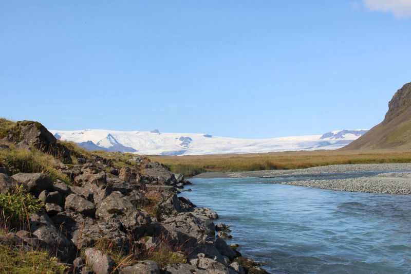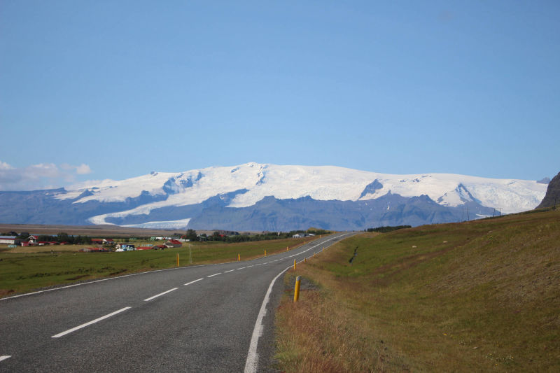 Der Wind, der mir gestern beim Einschlafen geholfen hatte, war in der Nacht zu einem wahren Störenfried geworden. Ich wachte immer wieder auf, weil ich mein Zelt kurz vor dem Abheben wähnte. Somit befand ich mich zum Start meiner Etappe nicht unbedingt in der besten Form. Aber es lagen auch nur 40 Kilometer vor mir und so war ich zuversichtlich. 9.00 Uhr verließ ich den schönen Bergsee und genoss erst einmal, diesmal den Berg herunterrollen zu können. Dann war ich wieder auf der Ringstraße und es ging wie gestern weiter - mit leichtem Gegenwind. Mit Musik oder einem Hörbuch im Ohr ist das aber alles ganz gut machbar. Nach etwa einer Stunde Fahrt baute sich vor mir ein mit Schnee bedeckter Berg auf, der auch zum Vatnajökull gehört. Ich fuhr direkt auf diesen zu und dann machte die Ringstraße einem Bogen und führte mich am Fuß des Berges entlang. Bald war es nicht mehr weit bis zu meinem Ziel. Die letzten Kilometer waren ein wenig deprimierend, weil ich kerzengerade Straßen entlangfuhr. Dabei ist der Nachteil, dass man schon sieht, wo man sich in etwa einer halben Stunde befinden wird. Aber bald wurde ich belohnt: Gegen 12.30 Uhr hatte ich den Gletschersee des Vatnajökull erreicht. Der Bus, der mich bis zu meinem endgültigen Tagesziel bringen sollte, würde erst 17.10 Uhr ankommen und so hatte ich eine Menge Zeit, um diesen besonderen Ort zu erkunden. Wie ich die Schönheit dieser Gegend am besten beschreiben soll, weiß ich nicht, denn ich fand diesen Ort unbeschreiblich schön. Irgendwie hat er mich verzaubert.