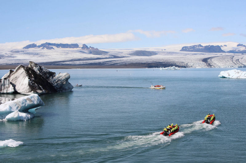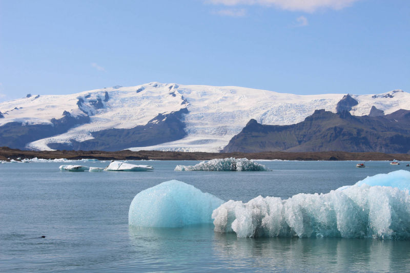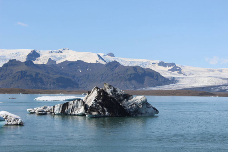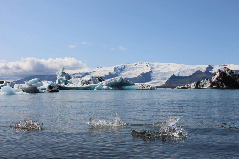 Als ich ankam, leuchtete der Gletschersee Jökulsárlón (deutsch: "Gletscherflusslagune") in einem milchigen Blau. Auf seiner Oberfläche trieben Eisberge verschiedenster Art und Farbe. Sie können bis zu 15 Meter Höhe über dem Wasser erreichen. Die einen ähnelten Kristallen und glänzten aufgrund der Sonneneinstrahlung in alle Richtungen, andere wiederum hatten das milchige Blau des Sees angenommen und wieder andere ließen schwarze Streifen entdecken oder waren aufgrund der Vulkanasche vollkommen schwarz. Diese Mixtur der Farben erzeugte eine beinahe märchenhafte Landschaft. Im Hintergrund befand sich zudem der Vatnajökull mit einigen Ausläufern und dieser perfektionierte das Gesamtbild. Kein Wunder, dass dieser See zum berühmtesten in Island zählt und hier auch schon einige berühmte Filme gedreht wurde. Darunter Werke wie James Bond – Stirb an einem anderen Tag oder James Bond 007 – Im Angesicht des Todes. Für die perfekte Szene wurde sogar extra der Abfluss zum Meer verschlossen, damit sich eine geschlossene Eisschicht auf der Oberfläche des Sees bildete.