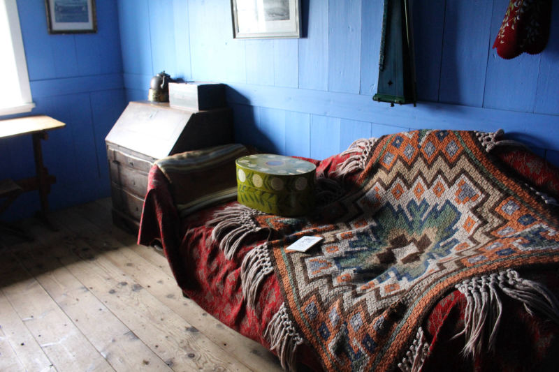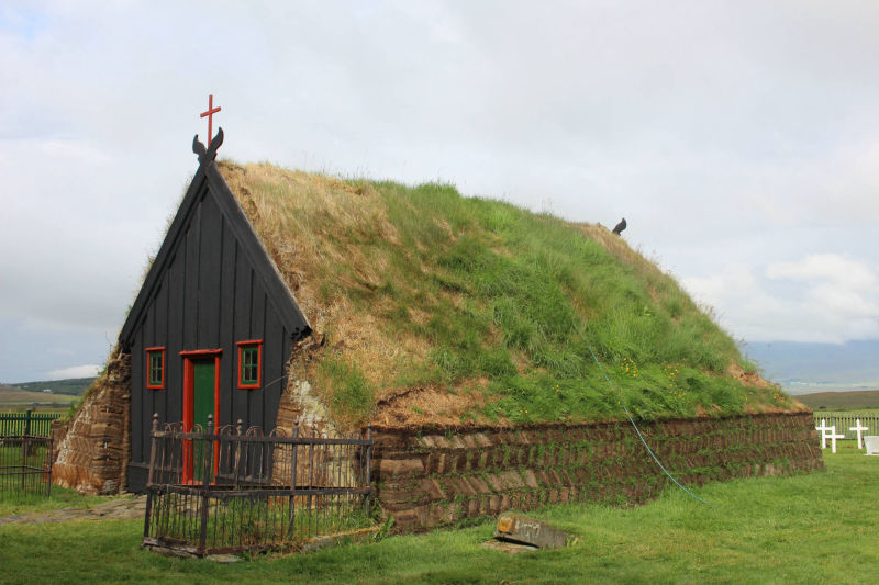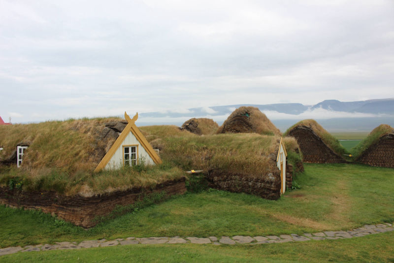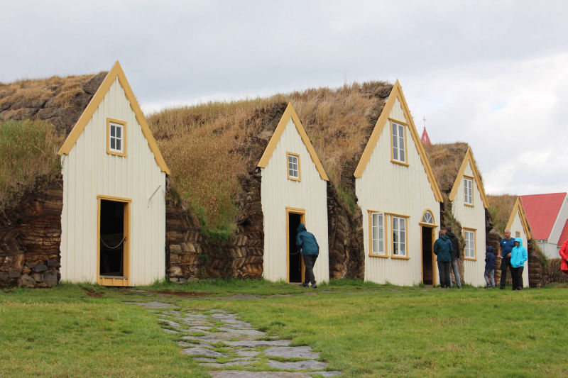 Die Torfhäuser stehen direkt neben der Kirche und wirken von der Hauptstraße aus recht unscheinbar. Näher betrachtet sind sie wirklich beeindruckend und dank der Einrichtungsgegenstände, die sich in den Häusern befinden, kann man sich gut vorstellen, wie die Menschen hier früher lebten. Glaumbær war bis 1947 noch bewohnt. Im Zentrum der Anlage befindet sich ein Museum, das Zutritt zu einem Korridor gestattet. Von hier aus gelangt man in 9 weitere Häuser. Wagt man es, in dieses Haus zu gehen, muss man wirklich vorsichtig wegen der niedrigen Decke sein. Es fühlte sich eher an, wie eine Höhle als ein Haus, aber gemütlich und warm schien es gewesen zu sein.