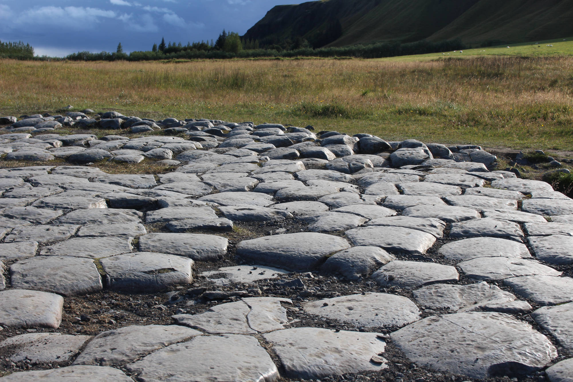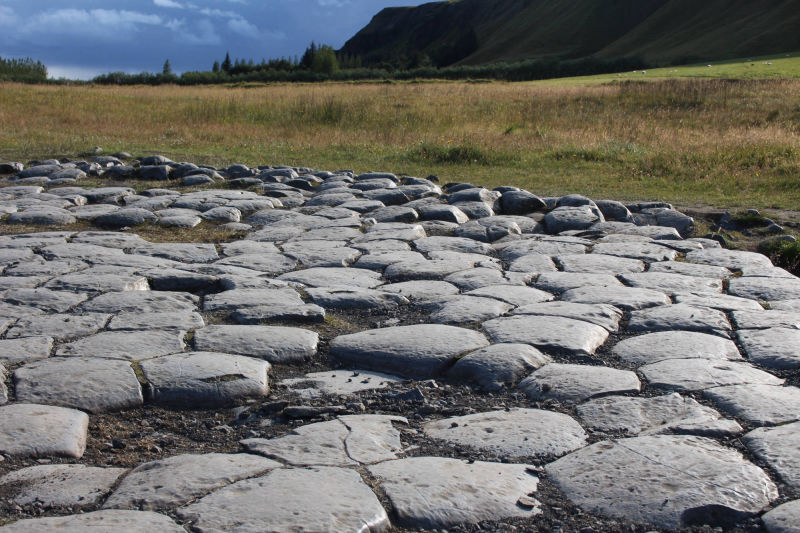Meine letzte Station führte mich östlich von Klaustur zum sogenannten Kirkjugólfið (deutsch: "Kirchenpflaster"). Tatsächlich könnte man denken, dieser kleine scheinbar gepflasterte Bereich, sei nichts Besonderes und von Menschenhand gemacht, aber diese Ansammlung von Steinen ist natürlich entstanden. Die vermeintlichen Pflastersteine sind in Wahrheit sechseckige Lavasäulen aus Basalt.