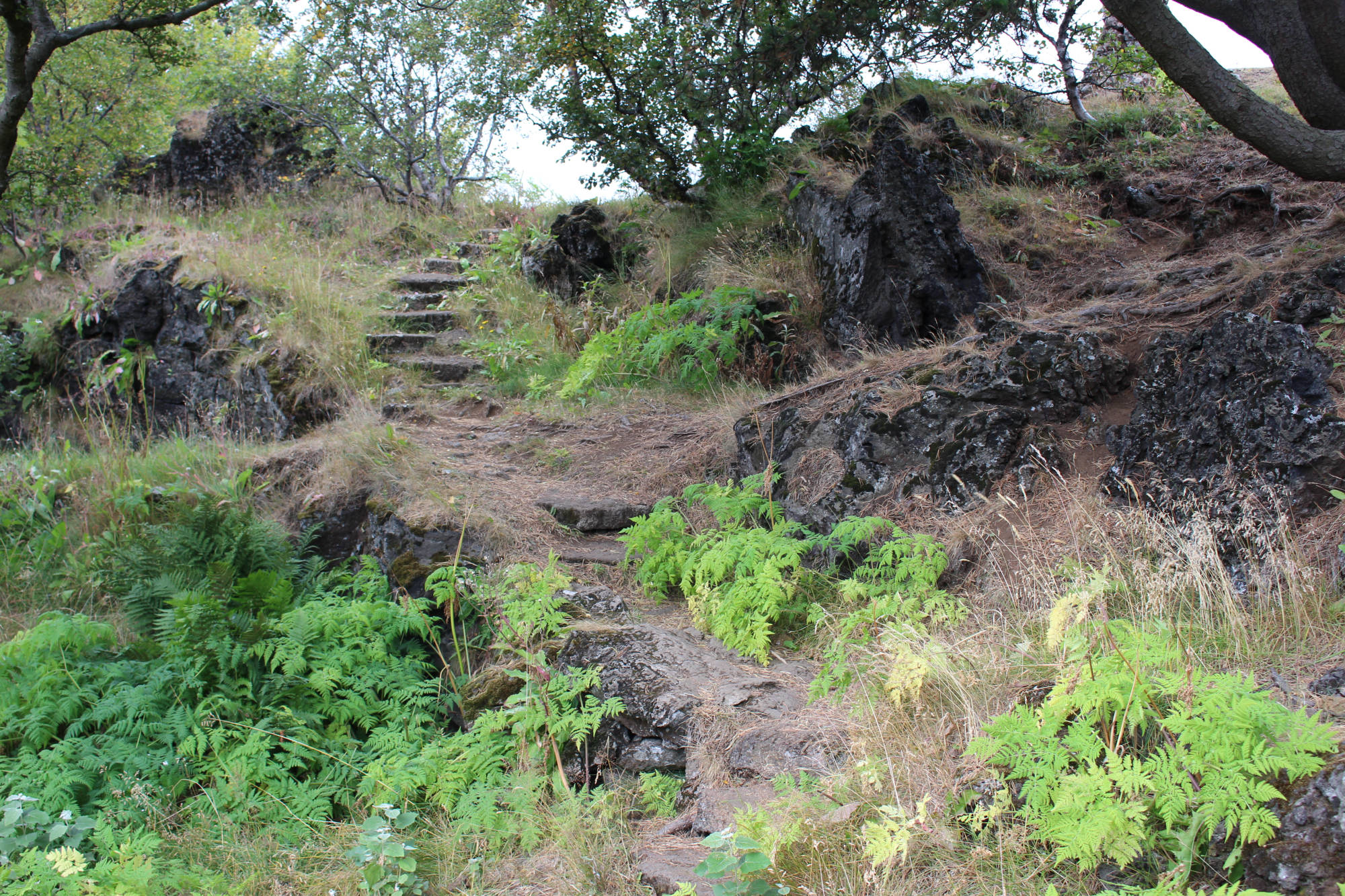 Mein Weg führte mich weiter zu dem seit 1984 geschützten Naturgebiet Hamarinn. Dieser Felsen entstand durch einen eiszeitlichen Gletscher, der sich vor etwa 300.000-500.000 Jahren aus dem Südosten Richtung Meer bewegte. Auf dem steinigen Boden konnte man sogar Einkerbungen durch das Gewicht des Gletschers erkennen.
