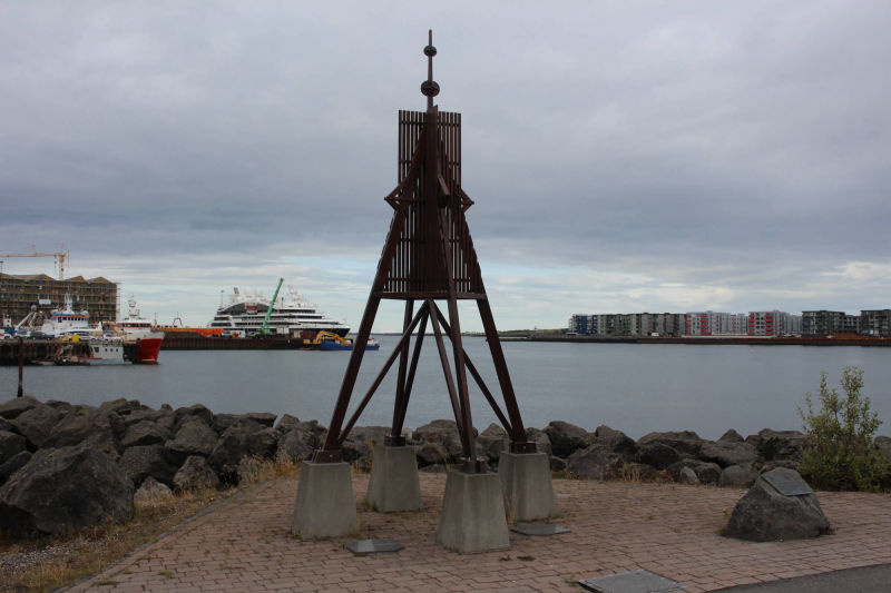 Nachdem ich diesen magischen Ort verlassen hatte, erreichte ich bald den schönen Hafen, um den sich hufeisenförmig bunte Häuser angesiedelt hatten. Dort erfuhr ich, dass dieser Ort auch eng mit der deutschen Geschichte verknüpft ist. 1470 begannen Kaufleute der Hanse aus Lübeck auch nach Island zu segeln. Es kam zu einer Konkurrenz mit England und einem Streit um die besten Häfen. 1475 beschreiben Quellen auch den Disput um den Hafen von Hafnarfjörður. Die Deutschen entschieden den Streit für sich, weil sie friedlicher agierten und günstigere Produkte offerierten. Bis zum 16. Jahrhundert konnte Hafnarfjörður als deutsche Stadt angesehen werden. 1602 verbannte der dänische König dann jedes andere Land von der Insel und vereinigte das Handelsmonopol auf Dänemark. Zudem veranlasste er, alle Gebäude, die durch die Hanse erreichtet worden waren, zu vernichten. So wurde das Band zwischen Deutschland und Island vorerst gekappt. Vom Hafen aus fuhr ich Richtung Zentrum und plötzlich sah ich links von mir eine Art Holzturm. Ich musste schmunzeln und dachte noch "Das gibt`s ja nicht. Kugelbake, bist du das?". Einen Moment später las ich auf dem Schild daneben tatsächlich die Aufschrift "Kugelbake". Während der Nordseetour, die ich mit Mama und Papa durchzog, war das unser Zielsymbol. "Bei der Kugelbake in Cuxhafen haben wir es geschafft!" hieß es immer. Und jetzt stand ich da, am Ziel meiner Tour - wieder an einer Kugelbake. Ohne Worte...