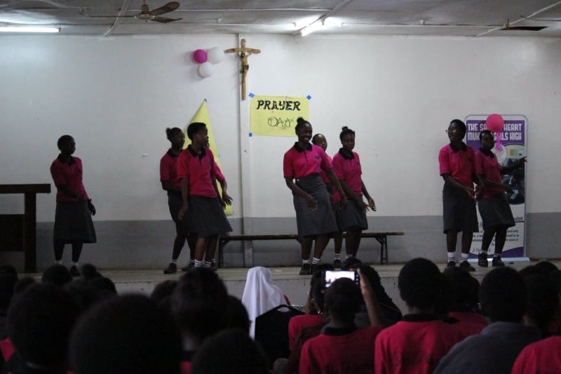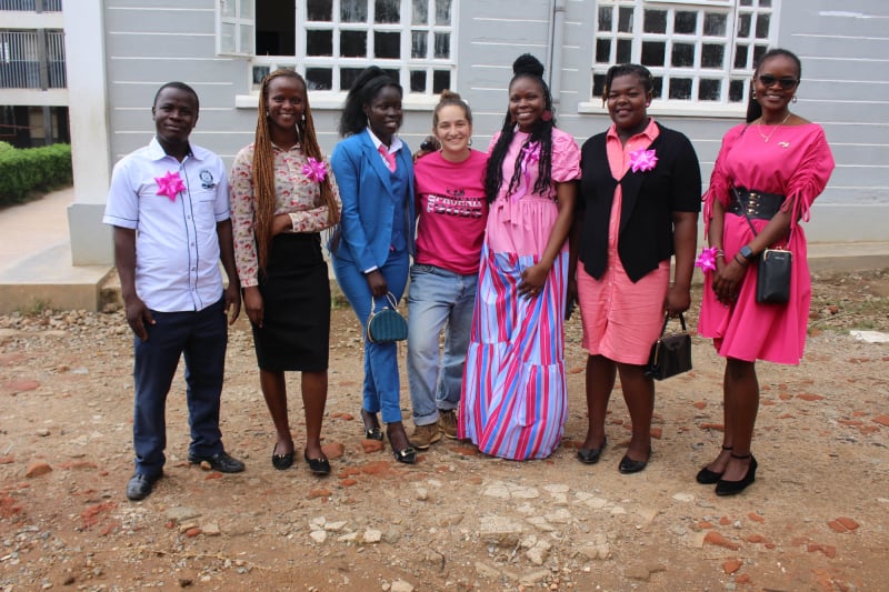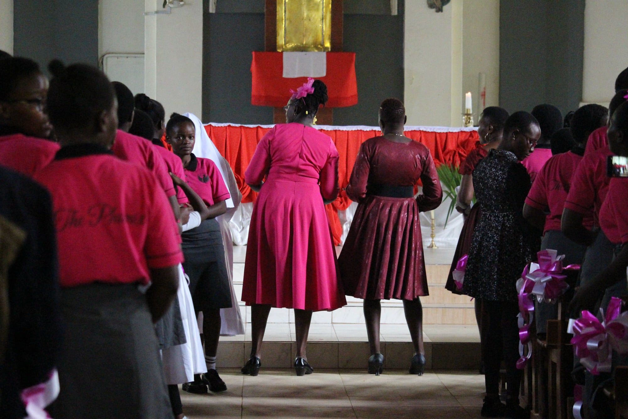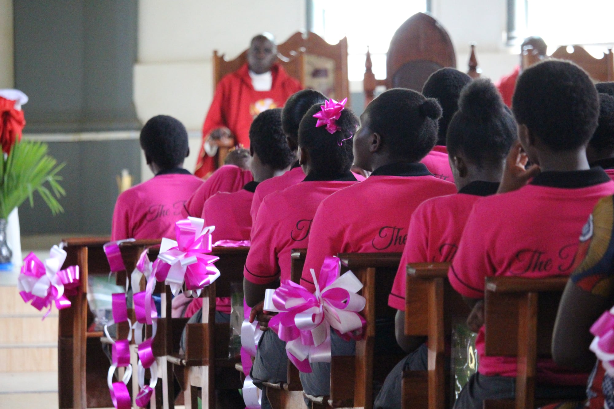 Der heutige Tag war vollgepackt mit Programmpunkten. Neben dem anfänglichen Gottesdienst sollten Reden gehalten werden, Kerzen angezündet und ein Kuchen angeschnitten werden. Im Anschluss sollte es Präsentationen der Klassen in der Halle der Schule geben. Als ich am Morgen im Lehrkräftezimmer ankam, war schon Hochbetrieb. In der Mitte des Raumes stand ein großer Korb mit rosa Schleifen, die sich alle Lehrkräfte ansteckten. Das Farbthema des heutigen Tages konnte nicht übersehen werden. Außerdem gab es wie jeden Morgen Frühstück: Tee und Mandazi (super lecker). Mandazi ist frittierter Teig und ist wohl am besten mit Kräppelchen vergleichbar.