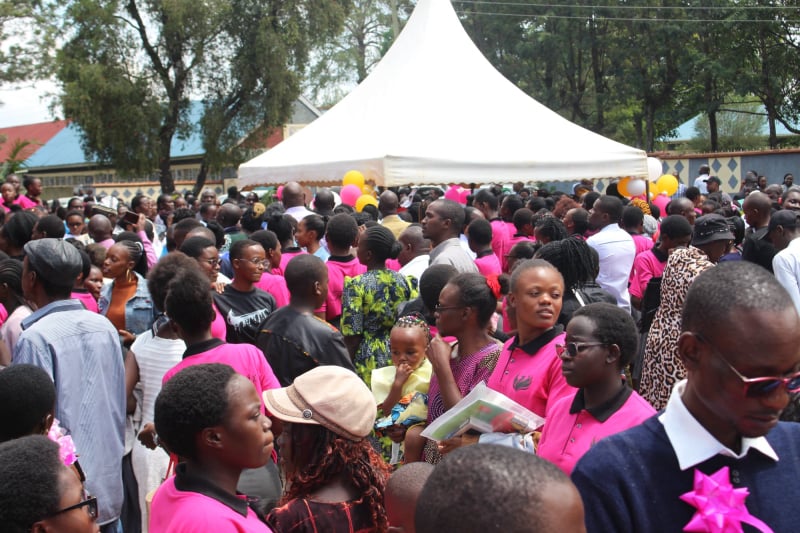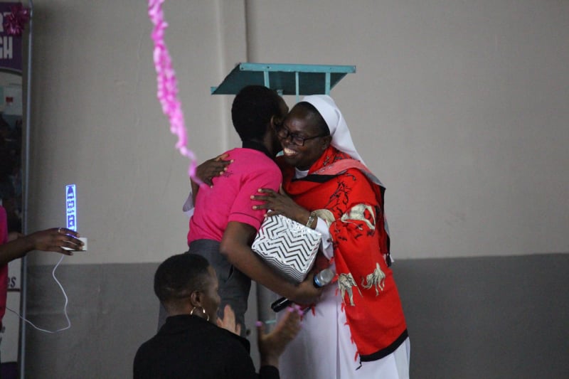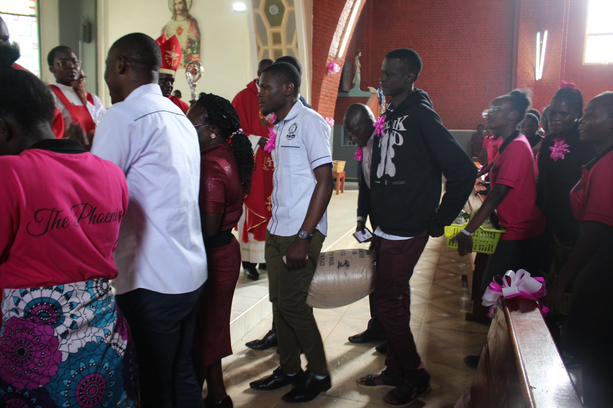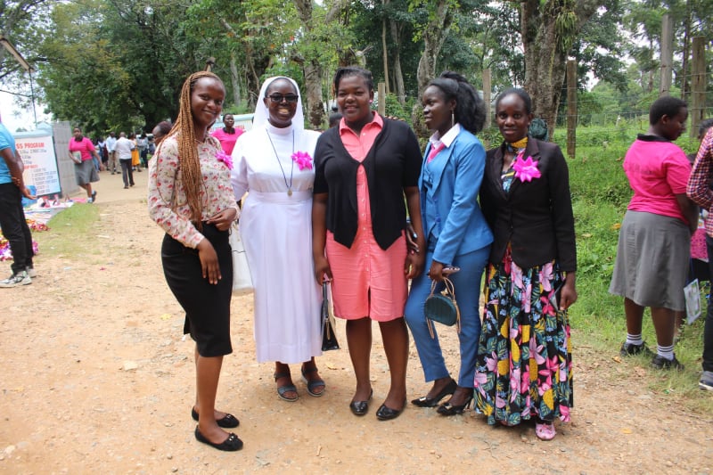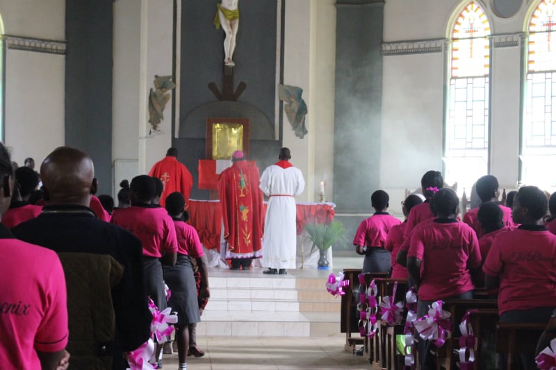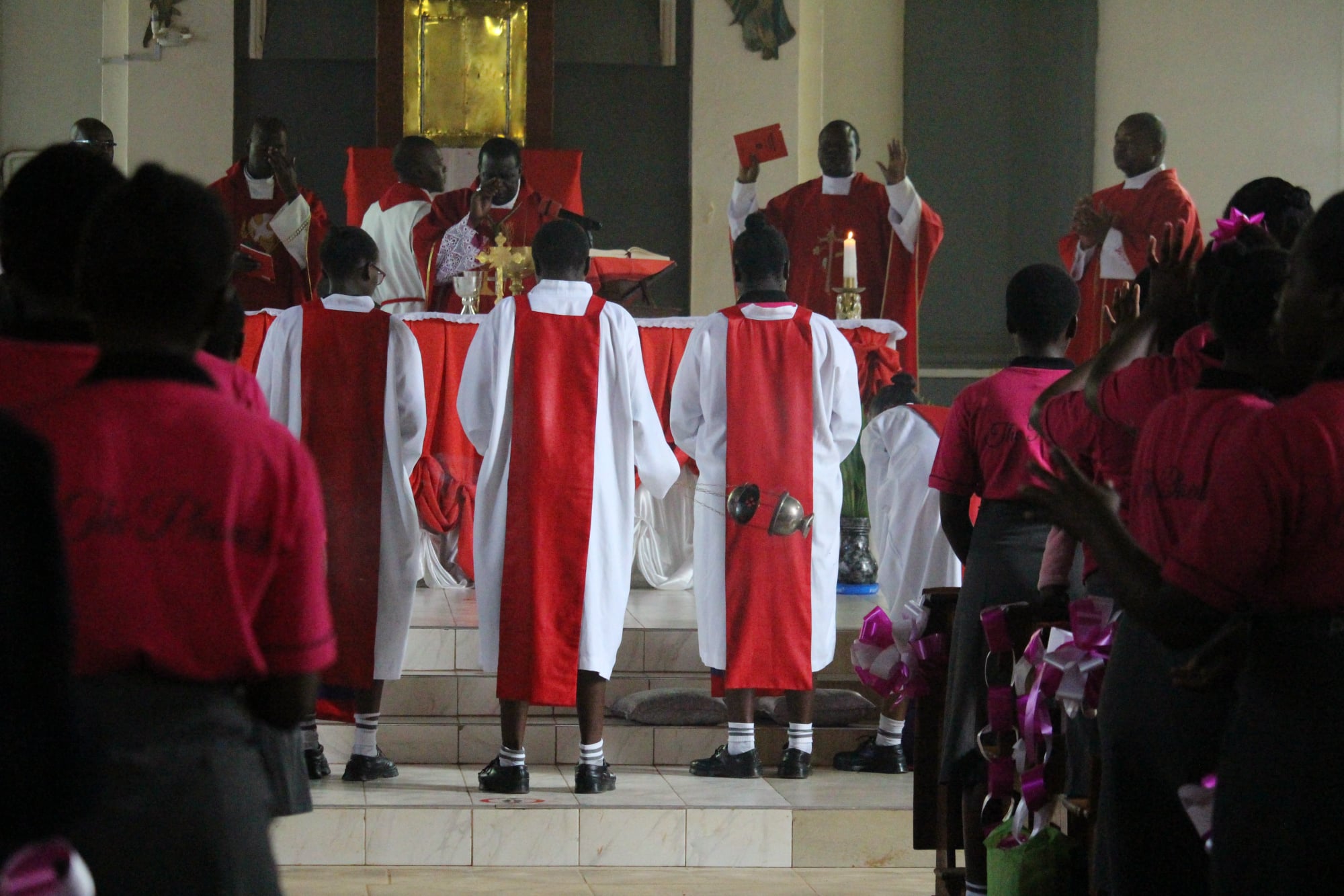 Der heutige Tag war vollgepackt mit Programmpunkten. Neben dem anfänglichen Gottesdienst sollten Reden gehalten werden, Kerzen angezündet und ein Kuchen angeschnitten werden. Im Anschluss sollte es Präsentationen der Klassen in der Halle der Schule geben. Als ich am Morgen im Lehrkräftezimmer ankam, war schon Hochbetrieb. In der Mitte des Raumes stand ein großer Korb mit rosa Schleifen, die sich alle Lehrkräfte ansteckten. Das Farbthema des heutigen Tages konnte nicht übersehen werden. Außerdem gab es wie jeden Morgen Frühstück: Tee und Mandazi (super lecker). Mandazi ist frittierter Teig und ist wohl am besten mit Kräppelchen vergleichbar.