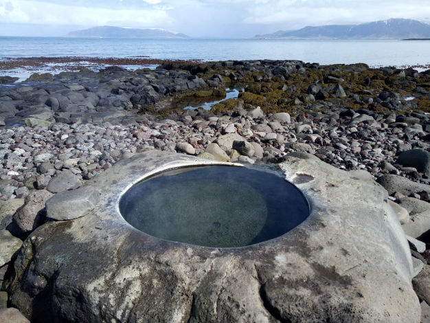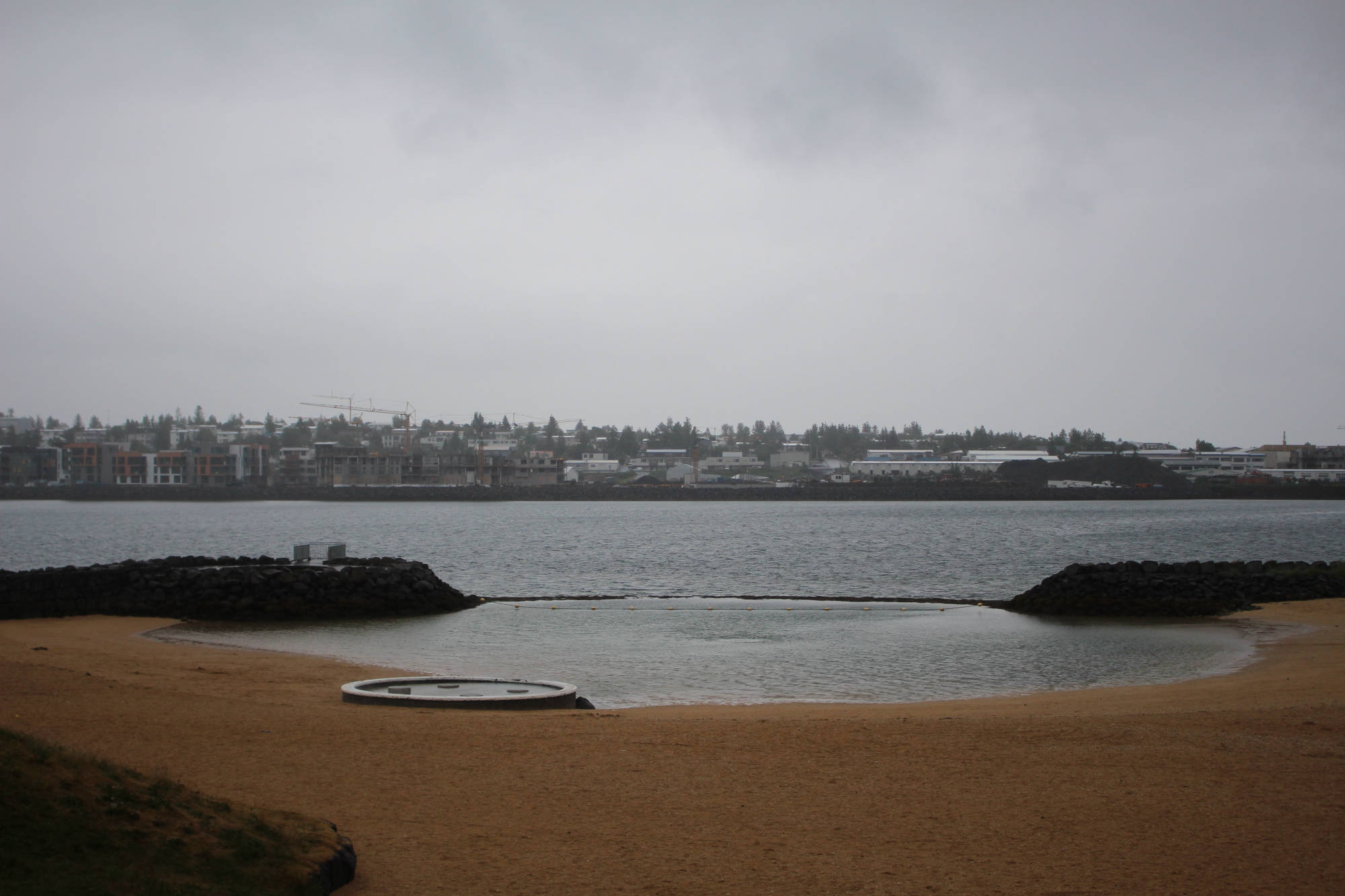Und dann kam mir ein Gedankenblitz: Bei einem gestrigen Gespräch mit einem Mitbewohner wurde mir empfohlen doch die geothermisch beheizte Bucht zu besichtigen. Man könne dort auch baden gehen. Gesagt, getan: Nach 30-minütiger Fahrt im Regen, der ziemlich plötzlich einsetzte, kam ich an und dann konnte mich wirklich niemand mehr davon abhalten, in das 13 °C kühle Wasser zu steigen. Beim anschließenden Aufwärmen im sogenannten heitur pottur (heißer Topf) fühlte ich mich wirklich pudelwohl. Nach diesem Abstecher war der Weg bis zur Universität nicht mehr weit und dann sollte ein Fußbad am Rande von Reykjavík den krönenden Abschluss bilden. Ja... was daraus geworden ist, könnt ihr weiter unten nachlesen. Trotzdem hatte sich der Ausflug gelohnt, da diese Gegend wie leergefegt war. Ich hatte Zeit mich noch ein bisschen auf eine Bank zu setzen und das Meer zu betrachten. Der Regen hatte einen angenehmen Geruch in die Luft gelegt und die Sonne war auf dem Weg Richtung Horizont. Herrlich!