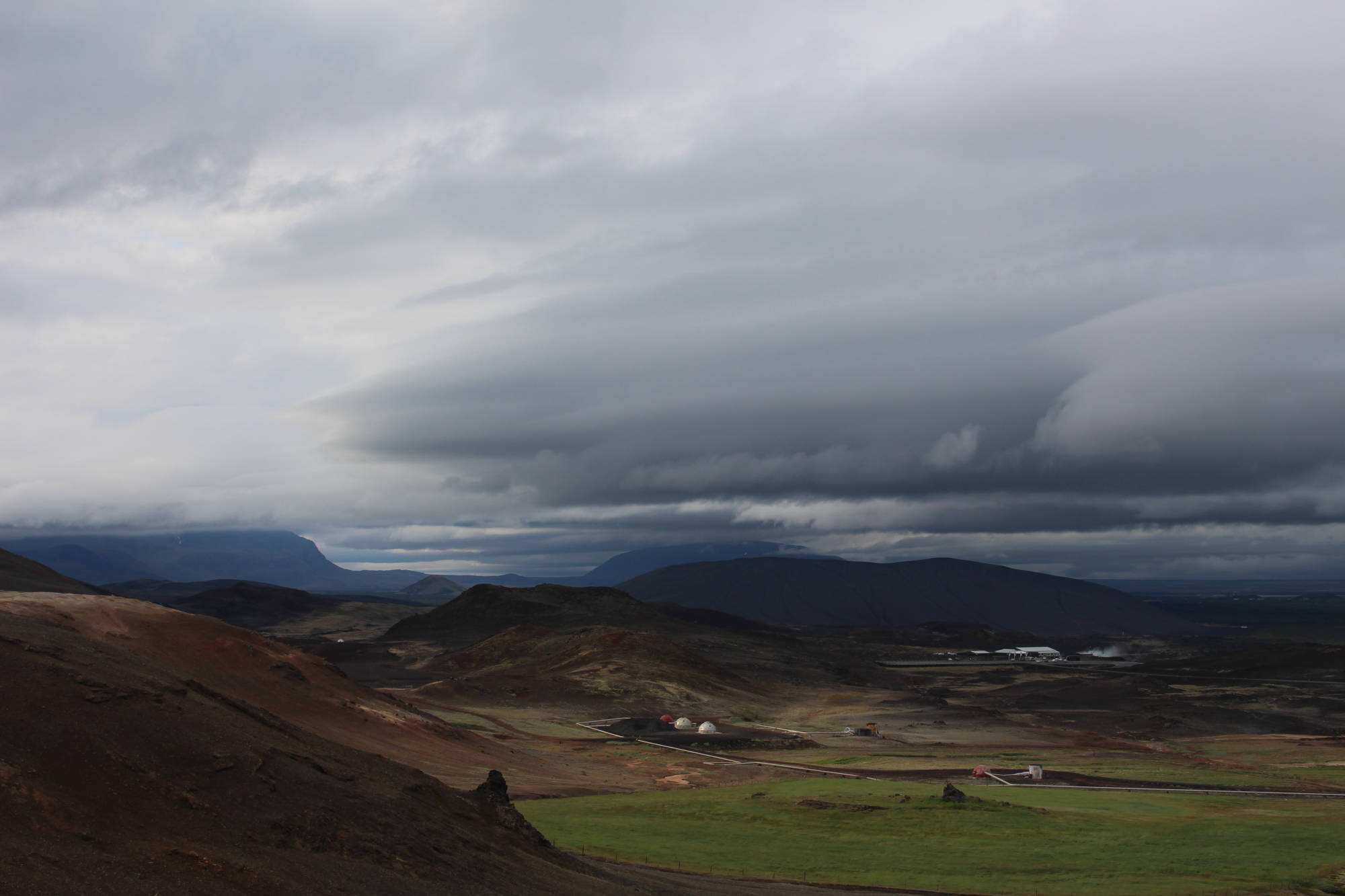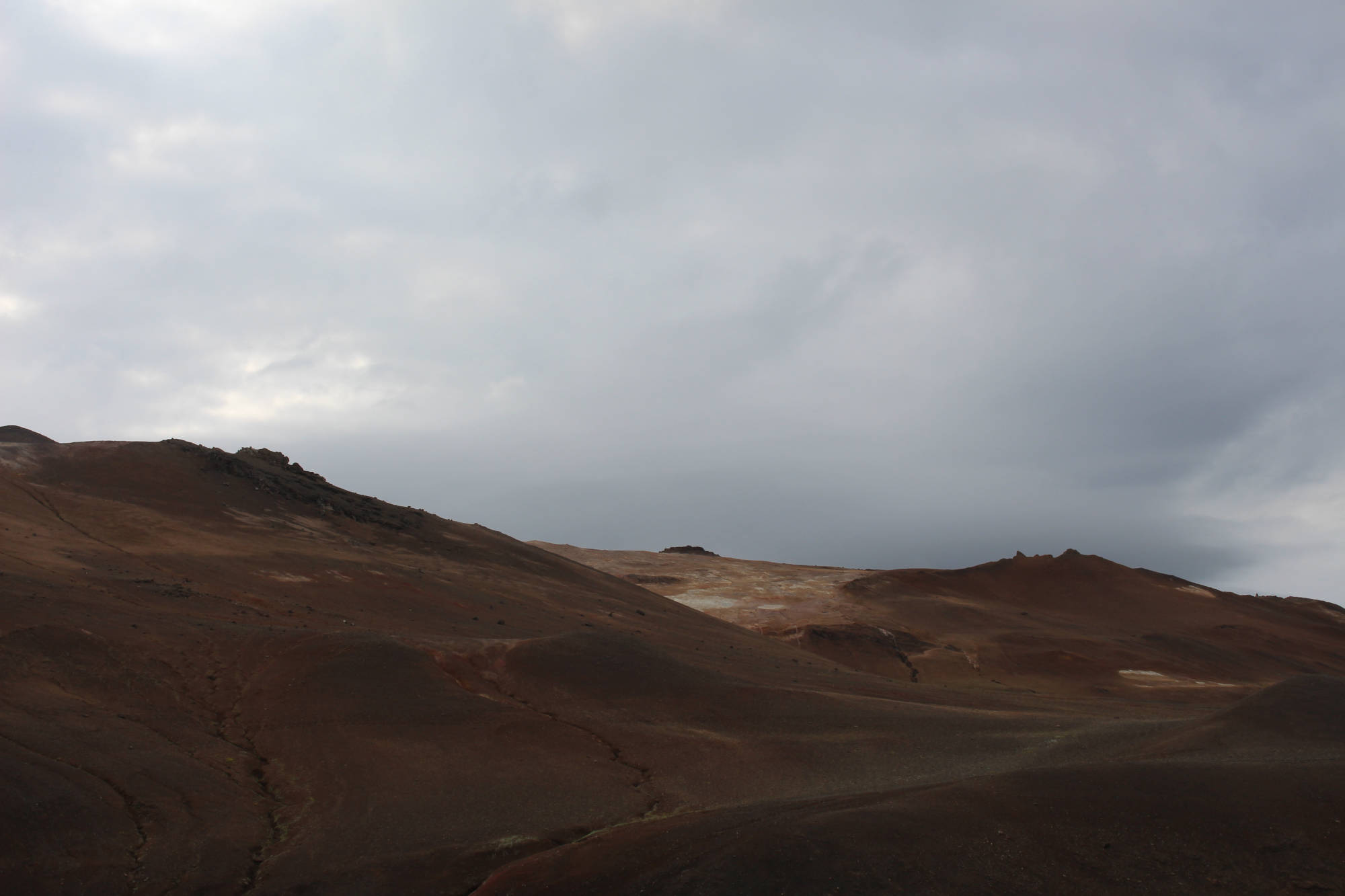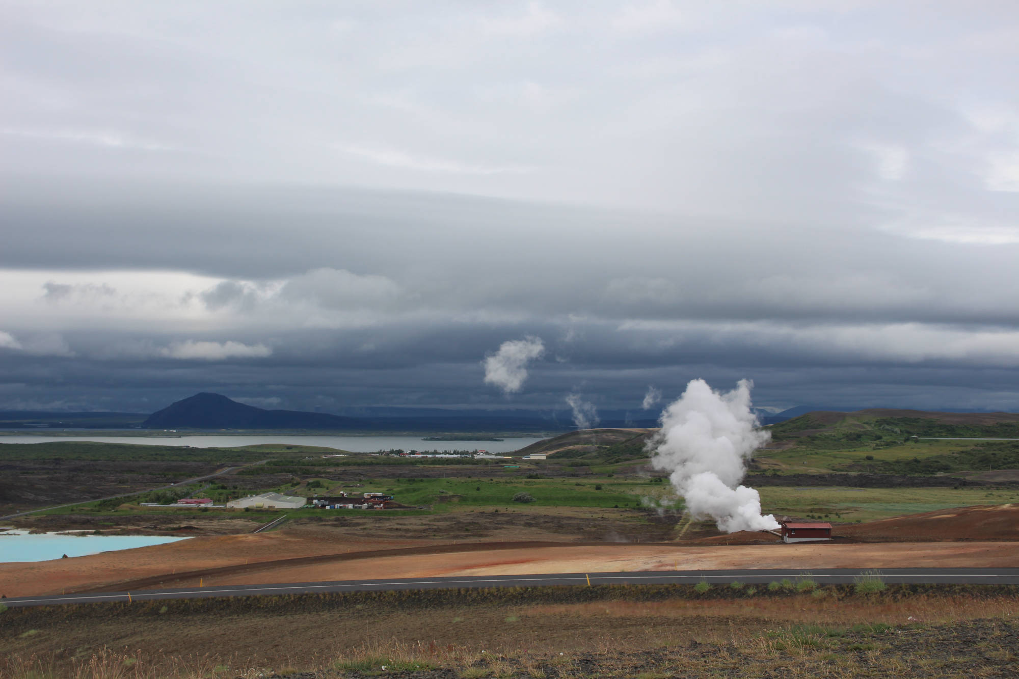 "Es ist egal, ob man die Insel im Uhrzeigersinn oder andersherum umrundet, man hat immer Wind." So oder so ähnlich hatte ich es bei meinen Vorbereitungen auf die Tour gelesen und heute spürte ich, wie wahr dieser Satz doch ist. Auf meinem Weg nach Grímsstaðir begleitete mich ein beständiger Gegenwind. Er war zwar nicht so stark, dass ich aufgeben wollte, aber er kostete mich eine Menge Kraft. Glücklicherweise sollte die heutige Etappe nur 40 Kilometer betragen und dementsprechend war es nicht schlimm, dass ich nur langsam vorankam. Die ersten 5 Kilometer führten mich über einen 417 Meter hohen Berg, dessen Anstieg recht steil verlief. Somit hieß es hier "kurz und schmerzlos" den Berg zu bezwingen. Der Ausblick war herrlich. Ich konnte die ganze Umgebung um den See betrachten. Auch an den Ausblick vom Fahrrad während der Fahrt werde ich mich nie gewöhnen. Die recht flache Umgebung hinter dem Berg ließ einen weiten Blick in die Ferne zu. Neben mir erstreckten sich Lavafelder und ab und zu fuhr ich an Bergen oder Kratern vorbei. Kurz vor meinem Ziel überquerte ich die "Golden Gate Bridge des Hochlands" und war beeindruckt von den reißenden Strömen, die sich unter der Brücke ihren Weg bahnten. Als ich auf den Weg zum Campingplatz abbog, sah ich schon das Schotterstraßen-Warnschild und bereitete mich auf die kommenden Strapazen vor. Die Straßenqualität nahm tatsächlich deutlich ab und ich versuchte den vielen Schlaglöchern auszuweichen. Der noch verstärkte Gegenwind sorgte nicht gerade für eine Verbesserung der Situation. Das waren wohl die 4 anstrengendsten Kilometer der gesamten bisherigen Tour. Ich erreichte den Campingplatz und mich überkam das Gefühl, am Ende der Welt angelangt zu sein. Zum einen waren keinerlei andere Camper zu sehen (was aber auch an meiner Ankunftszeit 13:30 Uhr lag), zum anderen bestand dieser Campingplatz aus einer Wiese mit einem Plumpsklo. Aber es stellte sich heraus, dass genau diese verlassene Gegend und deren Ruhe das Richtige für mich waren. Ich stellte mein Zelt auf, was sich bei dem Wind recht schwierig gestaltete, und legte mich auf meine Isomatte. Innerhalb der nächsten zwei Minuten war ich eingeschlafen und wachte erst 16.00 Uhr wieder auf. Anscheinend hatte mein Körper den Schlaf wirklich nötig.