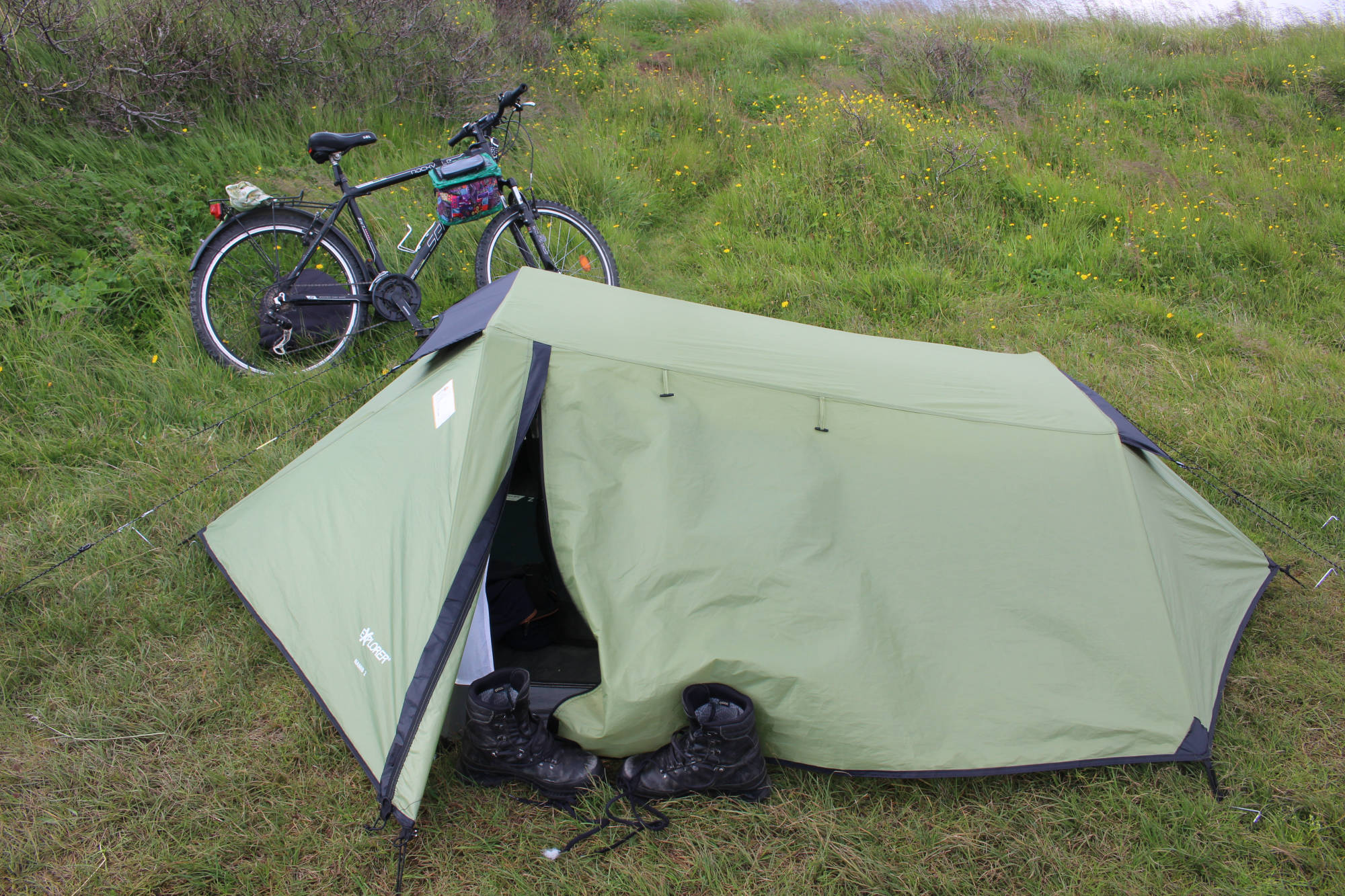 Nachdem ich meinen Energiespeicher wieder aufgefüllt hatte, las ich das erste Mal ein wenig in meinem Buch und verbrachte eine entspannte Zeit in meinem Zelt. Internetempfang gab es hier nämlich keinen, zumindest nicht in der Nähe meines Zeltes. Am kleinen Gästehaus weiter entfernt, war dann aber WLAN vorhanden. Ich verbrachte einen ruhigen Abend und hörte, wie sich der Campingplatz immer weiter füllte. Ich hätte nicht gedacht, dass überhaupt noch jemanden den Weg hierher finden würde. Für morgen plane ich, weiter nach Ásbyrgi zu fahren und übermorgen hierher zurückzukehren, um dann von der nahegelegenen Haltestelle bis nach Egilsstaðir mit dem Bus zu fahren. Auf jeden Fall hoffe ich, dass der Wind bis morgen noch ein bisschen nachlässt...