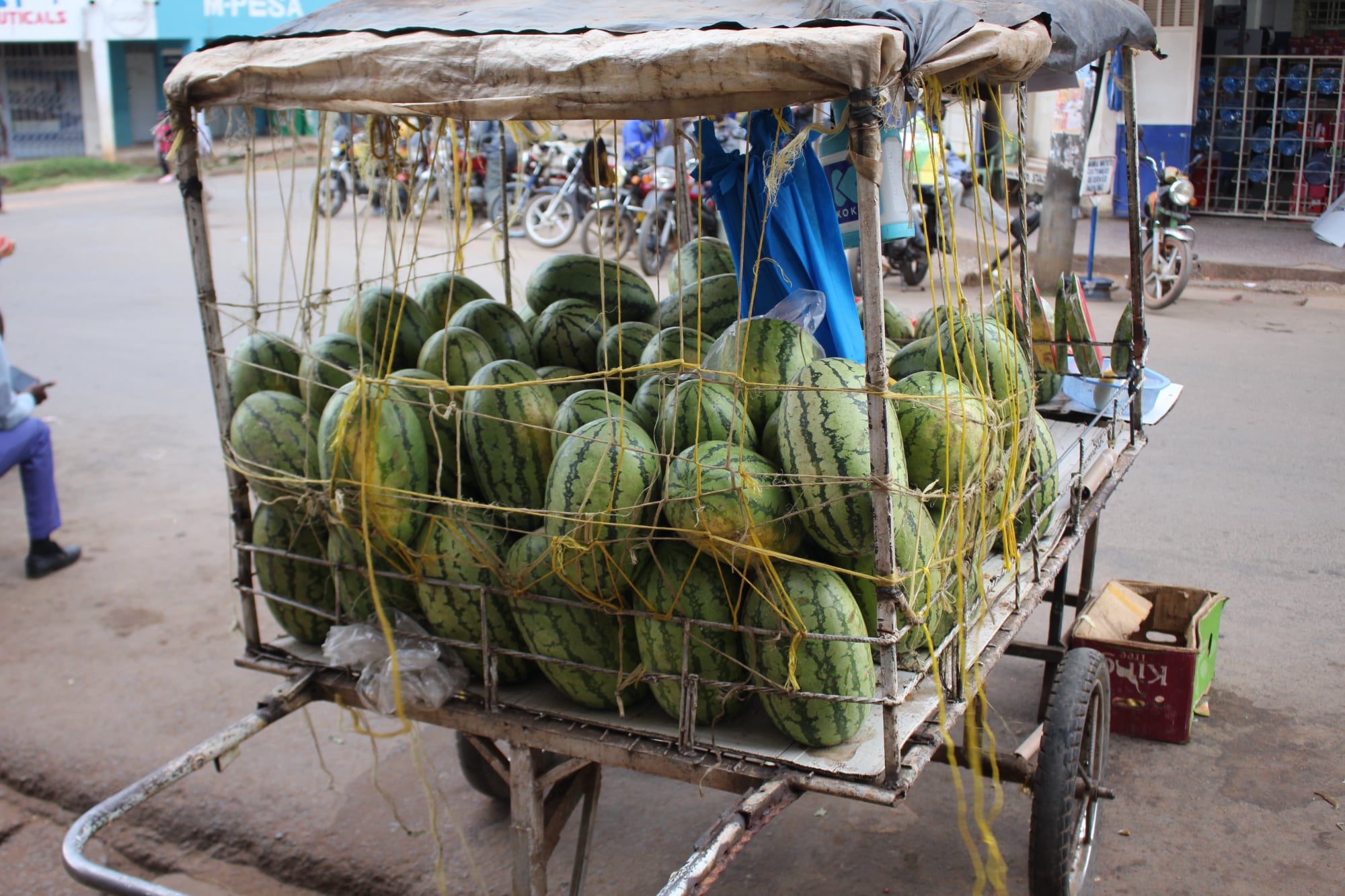 Am frühen Nachmittag ging es dann, wie geplant Richtung Stadt. Neben dem Kühlschrank, wollte David auch einen Standmixer kaufen. "You can put all the fruits and zrrr zrrr" ("Da tust du alle Früchte rein und zrrr zrrr") sagte er. In der ländlichen Gegend ist es in Kenia nicht die Norm, einen Kühlschrank und/oder einen Standmixer zu besitzen, insbesondere weil es oft Stromausfälle gibt. Das Essen wird gekauft, zubereitet und gegessen und zwar auch genauso viel, wie auch gegessen wird. Wir machten uns also mit dem tuk-tuk auf den Weg nach Kakamega. Wir nahmen auch Baby Linda mit.
