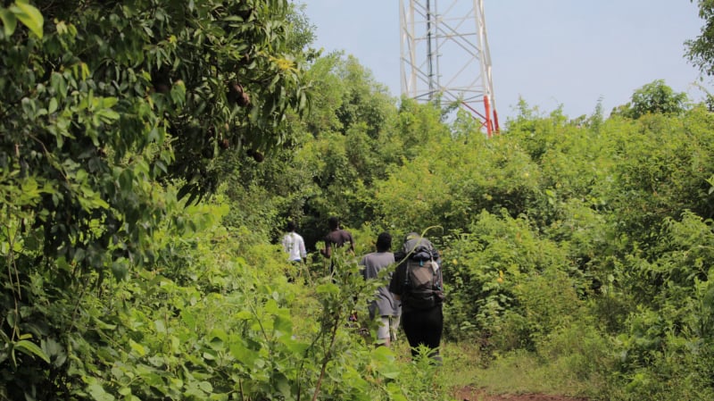 Itone heißt. Da wir recht spontan entschieden hatten, die Wanderung heute durchzuführen und es schon 10.00 Uhr war, fragte Martin seinen Freund Paul an, um uns mit seinem Motorrad auszuhelfen. Kurze Zeit später befanden wir uns zu dritt auf dem Motorrad (Paul, Martin und ich) auf der Ringstraße Richtung Osten. Etwa 15 Minuten nachdem wir Sena durchquert hatten, erreichten wir eine Kreuzung und bogen auf die Straße ab, die uns auf den Höhenzug bringen würde. Ziel war es den Airtel-Repeater zu erreichen, der vom See aus deutlich sichtbar ist.